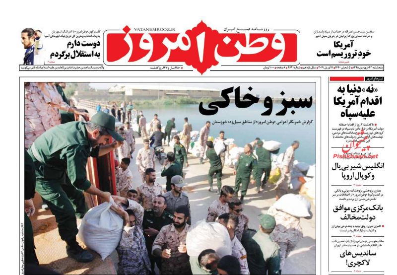 میکائیل دیانی: چهارشنبه 21 فروردین: دیشب از ساعت ۱۱ تا 9 صبح سربازان و افسران قرارگاه کربلا سرتاسر پلهای نهر سلمان (از نهرهای فرعی کارون پشت کیانپارس) را خاکریزبندی میکردند تا به اهواز آبی نفوذ نکند. در پایان کار همه سوار ماشینها شدند و لودرها و بیلهای مکانیکی و کمپرسورها را به سمت روستاهای شمال سوسنگرد بردند تا سیلبند مردمی آنجا را تقویت کنند.ما هم با یکی از بچههای عملیاتی قرارگاه کربلا راهی آنجا شدیم؛ به منطقه هوفل رسیدیم. با سروان حامد احمدی که مسؤول اسکان افراد این منطقه است همراه شدیم. مردم با روحیهای قوی در حال سیلبند زدن بودند و وجود لودرها و بیلهای مکانیکی کمک بسیاری کرد.