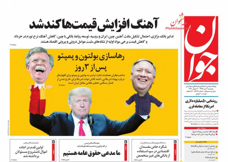 واشنگتنپست نیز در روایتی مشابه والاستریتژورنال گزارش کرده که ترامپ بعد از منصرف شدن از اقدام نظامی به مشاورانش گفته از اینکه در مسیر حمله نظامی گام برنداشته خوشحال است؛ موضعی که ترامپ روز شنبه در میان خبرنگاران چیزی نزدیک به آن را ابراز کرد و گفت که «اگر به ایران حمله میکردم همه میگفتند من جنگ طلب هستم، ولی حالا میگویند که من کبوترم، اما اگر واقعیت را بخواهید، من هیچ کدام نیستم.» او دیروز هم در گفتوگو با انبیسینیوز در پاسخ به این سؤال که آیا گروهی از مشاوران او میخواهند وی را وارد جنگ کنند، جان بولتون را یک جنگطلب توصیف کرد و گفت: «من دو گروه آدم دارم. بله، جان بولتون قطعا ًیک شاهین (لقب جنگطلبها) است. اگر با او بود، در آن واحد با کل دنیا میجنگید. خوب، اما مهم نیست، چون من دو طرف را دارم.»