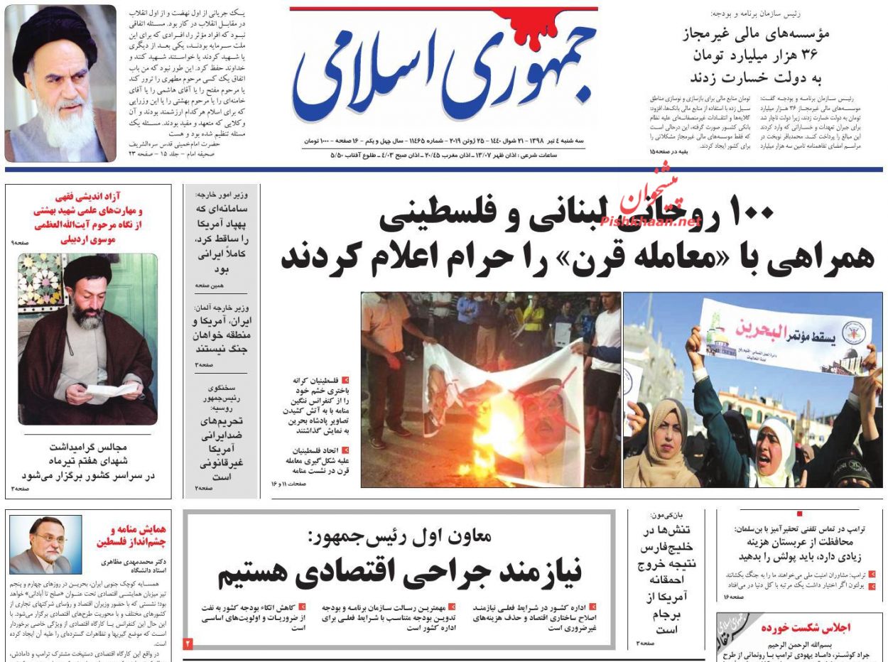 با این حال، اینبار نیز جهان اسلام در برابر طرح رئیسجمهور آمریکا موضعی واحد و یکدست ندارد؛ درحالی که عراق و لبنان اعلام کردهاند به دلیل حمایت از آرمان فلسطین در کارگاه منامه حضور نمییابند، مصر و اردن از مشارکت خود در این کارگاه اقتصادی خبر دادند و بحرین، عربستان و امارات نیز برای حضور در کارگاه منامه اعلام آمادگی کردهاند. از این رو به نظر میرسد هر چند یکطرفه بودن طرح معامله قرن، ناراضی بودن گروههای مختلف فلسطینی از آن و عدم حمایت فراگیر کشورهای اسلامی از این طرح چشم انداز روشنی برای موفقیت آن پیش رو نمیگذارد، اما در عین حال حمایت کشورهایی همچون عربستان و مصر از این طرح و قرار گرفتن آنها در کنار آمریکا و رژیم صهیونیستی پیام آور این خبر دردناک نیز هست که بحران فلسطین همچنان ادامه خواهد داشت و حقوق مردم مظلوم آن به این زودیها استیفا نخواهد شد.