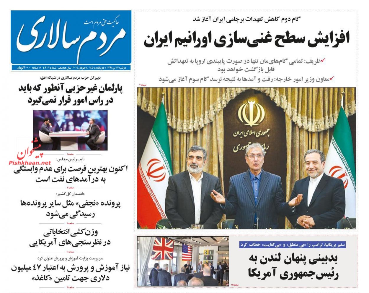 اصلا بحث اشخاص نیست. من به عنوان دبیرکل حزب که ده نفر از اعضای مجلس در فراکسیون مردم سالاری هستند ولی هیچوقت بروز و ظهور نداشته اند چرا؟ چون انقدر در اقلیت هستیم که بیانش را برای خودمان هم مصلحت نمیدانیم. در نمایندگان ما پاسخگویی نمیبینید چون وابسته به حزب نیستند.