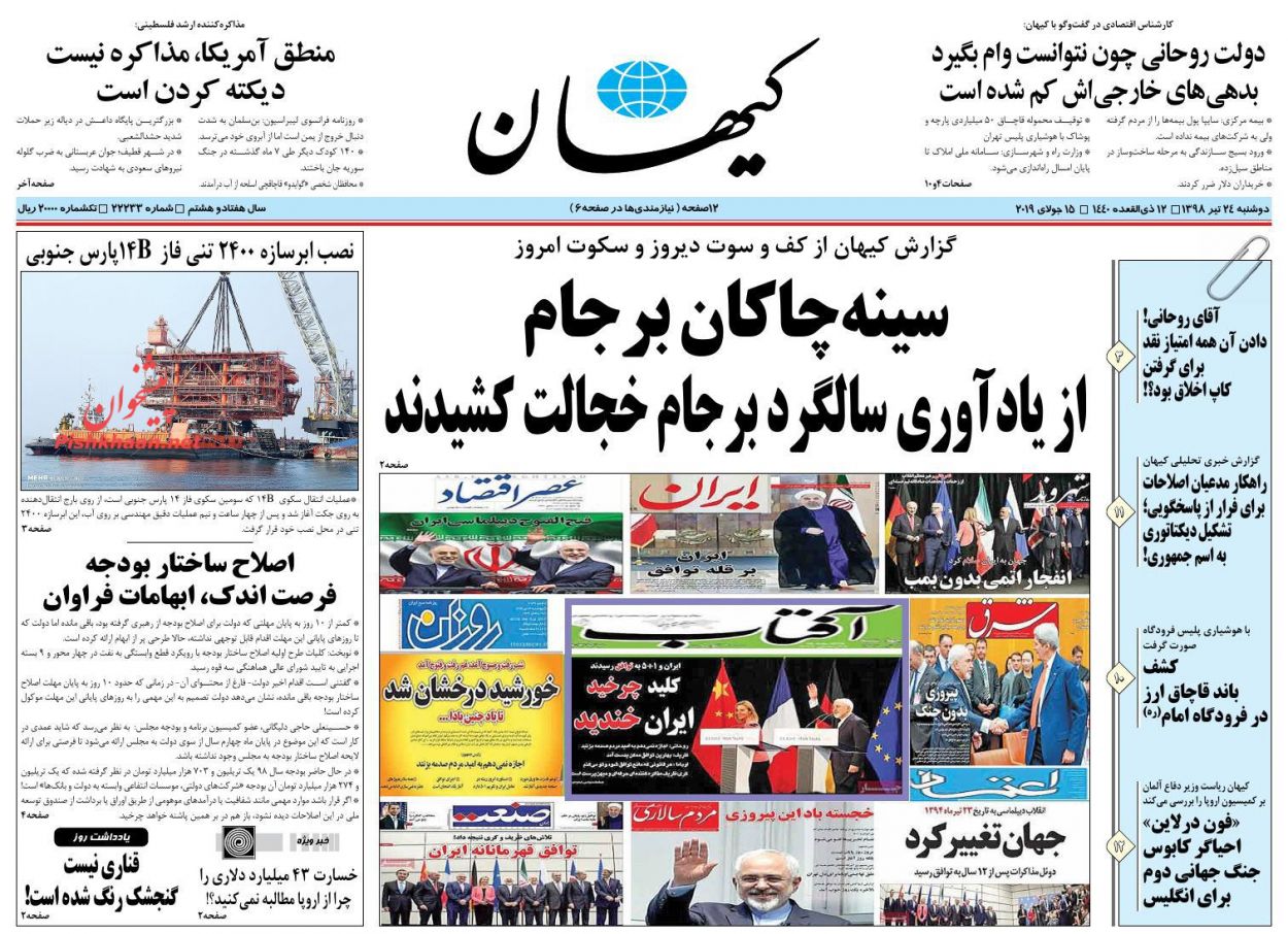 سرویس سیاسی-دیروز (23 تیر) مقارن بود با چهارمین سالروز امضای توافق هستهای (برجام). آن روز دولتمردان و طیف مدعی اصلاحات، جشن و پایکوبی به راه انداخته و مدعی بودند که با امضا و اجرای برجام، تمام مشکلات اقتصادی کشور حل خواهد شد.اما در چهارمین سالروز امضای برجام، روزنامههای زنجیرهای روزه سکوت گرفته و از یادآوری این واقعه امتناع کردند. گویا سینهچاکان برجام از یادآوری سالگرد آن خجالت کشیدند.