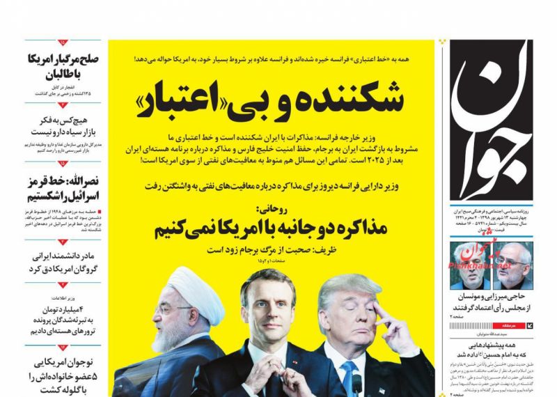 خبرگزاری «رویترز» هم روز سه شنبه در تأیید اخباری که پیش از این هم منتشر شده بود، نوشته است: پیشنهاد فرانسه به ایران برای حفظ توافق هستهای، اعطای یک خط اعتباری ۱۵ میلیارد دلاری تا پایان سال جاری میلادی در ازای بازگشت ایران به پایبندی کامل به توافق هستهای است. این خبرگزاری به نقل از یک فرد مطلع نوشته است: «سؤال این است که آیا میتوانیم به این سطح ۱۵ میلیارد دلاری برسیم؟ ثانیاً اینکه چه کسی آن را تأمین مالی میکند و سوم اینکه ما دستکم یک تأیید ضمنی از ایالات متحده نیاز داریم. هنوز موضع ایالات متحده را نمیدانیم». یک منبع مطلع گفته است: «مذاکرات ایران و فرانسه هنوز به مرحله بحث درباره نحوه بازپرداخت این خط اعتباری نرسیده است، اما انتظار میرود که فروش نفت ایران به مرور از سر گرفته شود. تاکنون چند کشور برای پیوستن به این ساز و کار با فرانسه رایزنی کردهاند». رئیسجمهور فرانسه اعطای این خط اعتباری را به بازگشت ایران به انطباق کامل با برجام منوط کرده است. یک دیپلمات فرانسوی در این خصوص گفته است: «این موضوعی فوقالعاده حساس است و نمیخواهیم مخالفان این ایده آن را به شکست بکشانند. اوضاع به شدت ناپایدار است.» از سوی دیگر، پک هاویستو، وزیر خارجه فنلاند هم دیروز این احتمال را که بسته پیشنهادی فرانسه به ایران، اجازه صادر کردن ۷۰۰ هزار بشکه نفت در روز را شامل شود، رد نکرد.