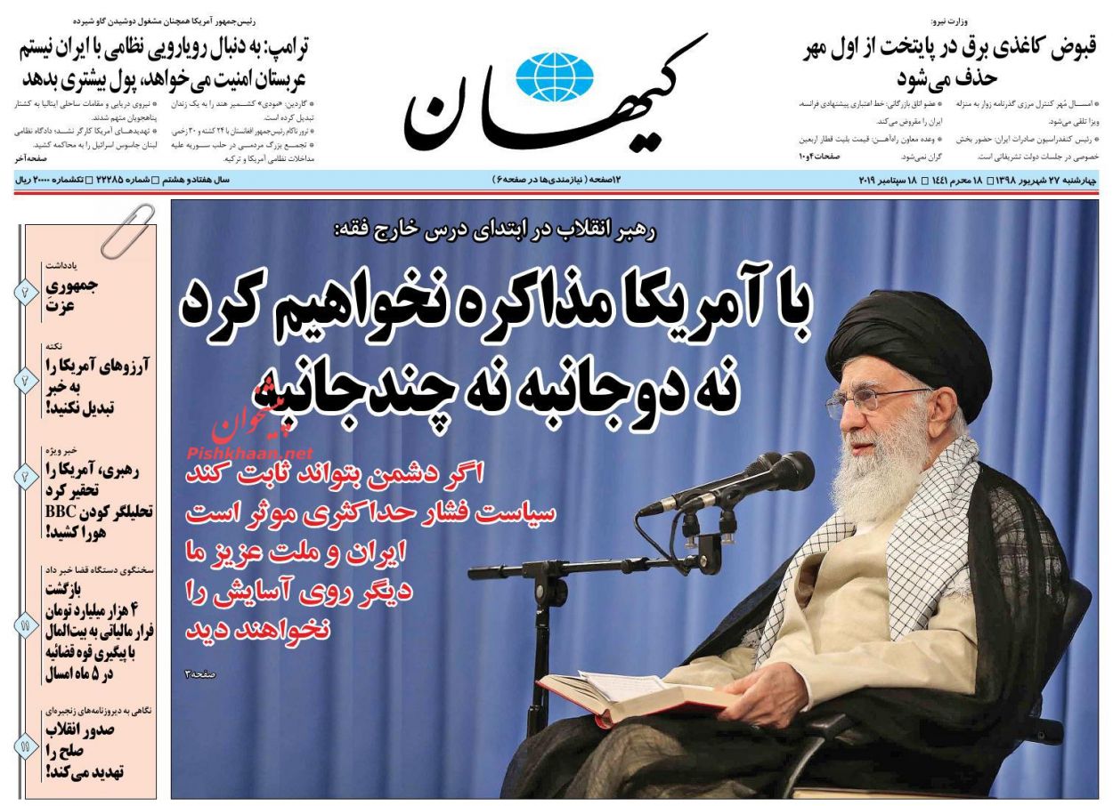 اینکه اینها اصرار به مذاکره دارند، اینکه بعضی از اروپاییها را میاندازند وسط - که من حالا راجع به اروپاییها یک وقت دیگر صحبت خواهم کرد- که مدام اصرار کنند [اگر] بیایید با رئیسجمهور آمریکا یک جلسه بکنید، همه مشکلات شما حل خواهد شد، بهخاطر این است؛ برای این است که اثبات کنند فشار حدّاکثری سیاست موفّقی است و این را باید در مقابل ایران به کار بست. ما باید در مقابل، اثبات کنیم که سیاست فشار حدّاکثری پشیزی در مقابل ملّت ایران ارزش ندارد.