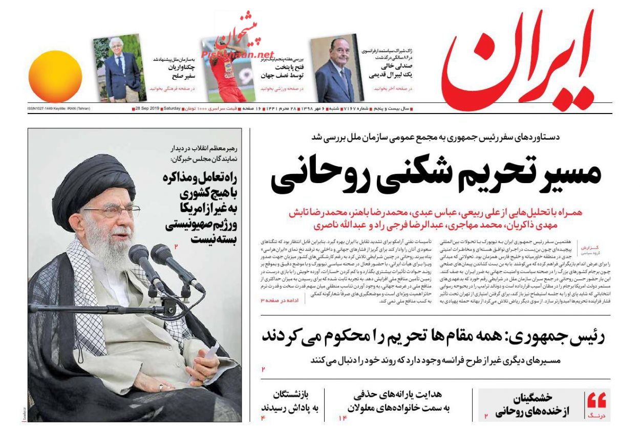 روحانی عصر دیروز در فرودگاه مهرآباد تهران، دستاوردهای سفر به نیویورک را در این حوزهها خلاصه کرد: پاسخ به فضاسازیهای سیاسی و رسانهای درباره نقش ادعایی ایران در حادثه آرامکو، روشن شدن این واقعیت که ایران مخالف مذاکره نیست، پاسخ به این ادعا که ایران با کاهش تعهدات به دنبال بمب هستهای است و در نهایت، نشان دادن ناکامی امریکا در انزوای دیپلماتیک ایران. او با اشاره به اینکه امریکاییها تقریباً به همه سران اروپایی و غیر اروپایی پیغام داده بودند که ما آماده مذاکرهایم، درخواست امریکا را نخست مذاکره دوجانبه رؤسای جمهوری و سپس مذاکره در قالب 1+5 عنوان کرد و افزود: سران آلمان، انگلیس و فرانسه اصرار داشتند که این جلسه برقرار شود و امریکا هم میگوید که من تحریم را برمیدارم، بحث این بود اینکه چه تحریمی برداشته شود و آنان به صراحت گفته بودند کل تحریم را برمیداریم، اما شکل این کار شکلی نبود که قابل قبول باشد، یعنی اینکه در فضای تحریم و در بقای تحریم و فضای مسموم فشار حداکثری، حتی اگر در قالب 1+5 بخواهیم با امریکاییها مذاکره کنیم، هیچکس نمیتواند پیشبینی کند که پایان و نتیجه این مذاکره چه