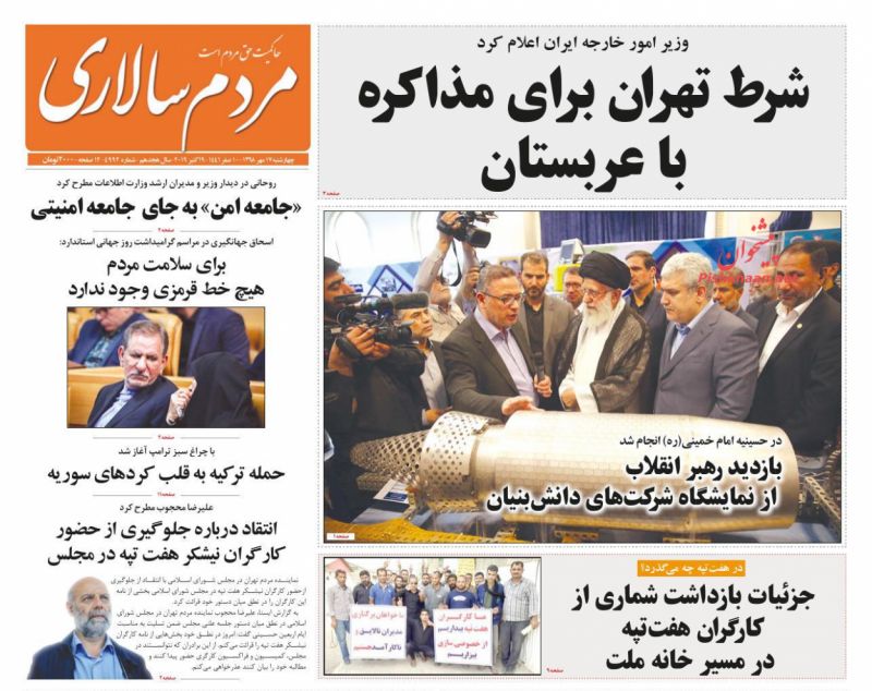 روحانی تصریح کرد: مردم نشان دادند که هوشیارند و ریشه فشارها و سختیها را بدرستی میشناسند»، تصریح کرد: امروز مهمترین قدردانی مسوولان از ملت، حفظ نظام اسلامی، ایران عزیز، منافع ملی و اثبات کارامدی و خدمت به جامعه است.