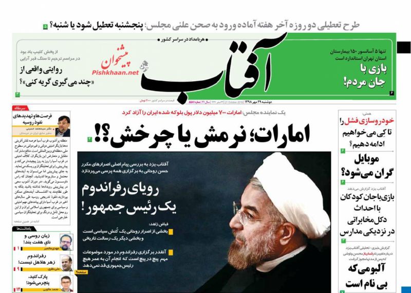 آفتاب یزد به بررسی پیام اصلی اصرارهای مکرر حسن روحانی به برگزاری همه پرسی میپردازد