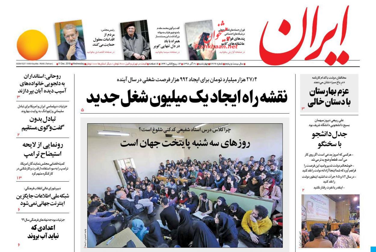 علیرضا قادری، مسئول بسیج دانشجویی در سخنرانی خود از سیاستهای اقتصادی و خارجی دولت انتقاد کرد، اینکه دولت مسائل کشور را به دستان 1+5 گره زد و حالا از کمبود اختیارات میگوید. او گفت «آقای روحانی، خون مردم ریخته شد و شما ریشخند میزنید؟ تا کی باید سرمایه نظام به پای دولت نوشته شود و وجهه امام امت صرف تصمیمات اشتباه حضرات شود؟ (در ماجرای بنزین) فکر نمیکنید اگر رهبری نبود، روحانی به سرنوشت سعد حریری و عادل عبدالمهدی دچار میشد؟»