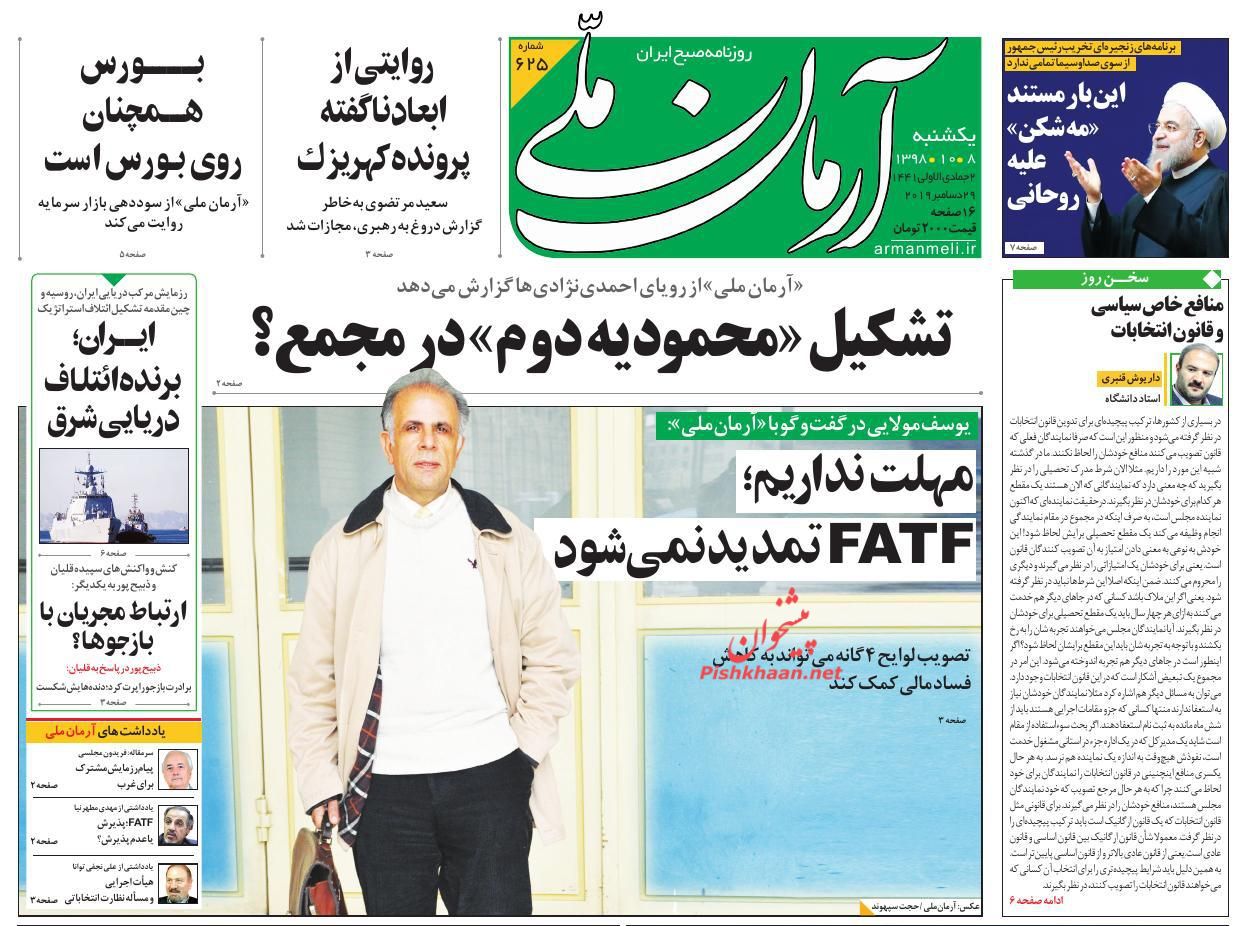 آرمان ملي:کمتر از يک ماه به پايان تمديد چهارمين مهلت گروه ويژه اقدام مالي موسوم بهFATF زمان باقي است، اما همچنان لوايح پالرمو وCFT در بوروکراسيهاي مجمعتشخيص مصلحت نظام در رفت و آمد است. چنانکه يک سال پس از تصويب لايحه پالرمو مجمع بهواسطه عدم اتخاذ تصميم اين لايحه را از دستور کار خارج کرد و تصميمي هم براي CFT گرفته نشده است. البته يکي از اعضاي مجمع اخيرا گفته که «به احتمال زياد چهارشنبه همين هفته بررسيها در مورد اين لايحه ادامه خواهد داشت»، اما بهنظر نميرسد که مجمع همچون پالرمو رويکرد مثبتي روي اين لايحه نيز داشته باشد. با وجود اينکه کشور در شرايط اقتصادي چندان خوبي بسر نميبرد و اخيرا نيز روسيه و چين اعلام کردند که اگر ايران FATF را نپذيرد در مراودات مالي مشکل خواهيم داشت. لذا مجمع تشخيص بايد درباره تصويب پالرمو و CFT تصميم نهايي را اتخاذ کند.باتوجه به اينکه کارگروه ويژه اقدام مالي مشترک چندين بار مهلت ايران را تمديد کرده اين احتمال وجود دارد که باز هم اين فرصت تمديد شود؟