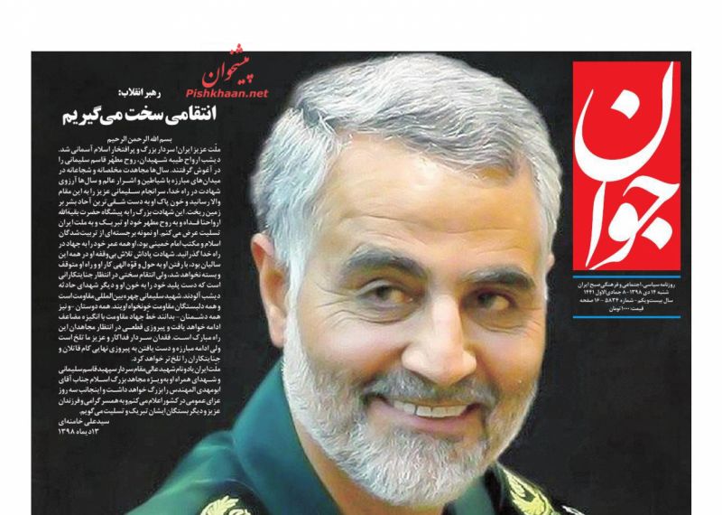 شبکههای رادیویی و تلویزیونی جهان برنامههای عادی خود را قطع کردند و مردم دلباخته سلیمانی، در برخی کشورها علیه ترور او و علیه دولت امریکا راهپیمایی کردند و برای اولین بار در حرم امام حسین علیه السلام فریاد مرگ بر امریکای مردم عراق پیچید. در ایران، عزاداری اول از خانهها شروع شد، بعد به فضای مجازی رسید، بعد پارچه مشکی سر در ساختمانها شد، بعد عکس شد روی موتور و ماشین مردم، بعد به خیابان رسید و سینه زنی و «ای اهل حرم سید و سالار نیامد، علمدار نیامد»، بعد نماز جمعه و شعارهای مرگ بر امریکا، بعد صدای قرآن مساجد، و در نهایت انگار یک آیه زمزمه ذهنها شد؛ «سَیعلَمُ الّذینَ ظَلَمواای مَنقَلَبٍ ینقَلِبونَ؛ و آنان که ظلم و ستم کردند به زودی خواهند دانست که به چه کیفرگاهی باز میگردند.» ما انتقام میگیریم. مهمتر آنکه با رفتن فرمانده مقاومت، جهاد به پایان نخواهد رسید؛ این را رهبری گفتند تا دوست و دشمن بدانند: «خطّ جهاد مقاومت با انگیزه مضاعف ادامه خواهد یافت.» جوانان هم دانستهاند که جز رهبر، هیچ کس نمیتواند تسلای شان دهد و غروب جمعه را راهی خیابان فلسطین جنوبی شدند، خیابان منتهی به بیت رهبری و شعار میدادند: «خون سردار حسین، شر اسرائیل را از این جهان کم میکند.»