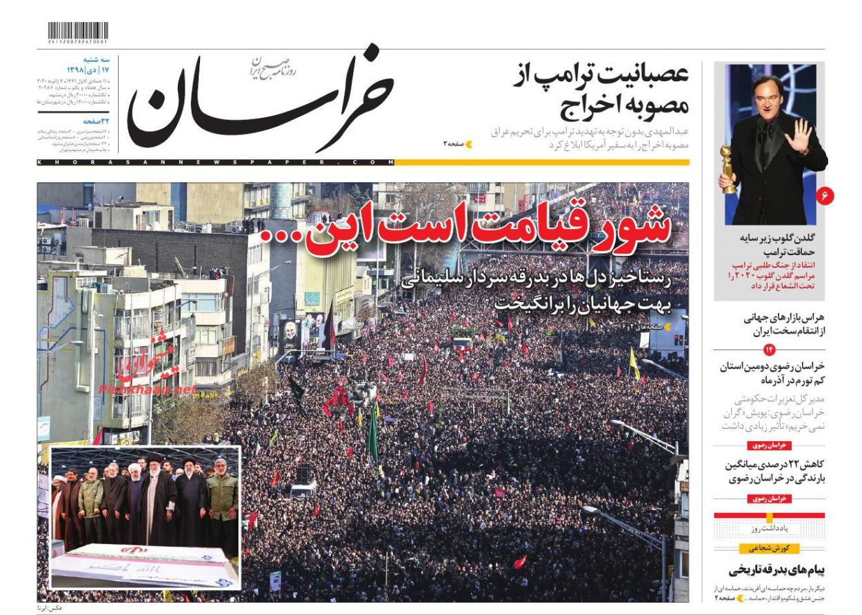 خبرگزاری فرانسه در گزارش خود درباره مراسم تشییع پیکر فرمانده شهید نیروی قدس سپاه به ایجاد موج ادای احترام به سردار سپهبد قاسم سلیمانی در ایران و منطقه و «دریای سوگواران تهرانی» اشاره کرد.