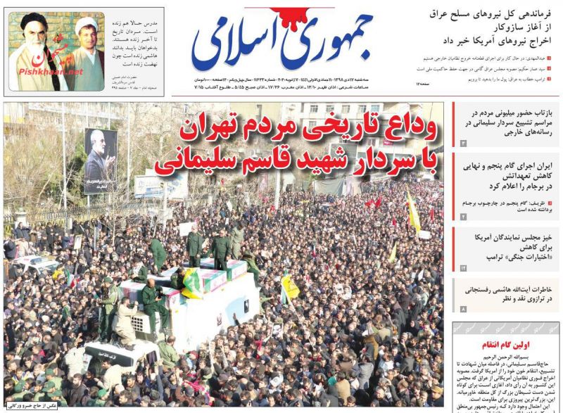 حضور گسترده مردم بزرگ ایران در مراسم تشییع و تجلیل از سردار بزرگ اسلام و ایران سپهبد شهید قاسم سلیمانی، جلوهای از قدرشناسی مردم ایران را به نمایش گذاشت. وجودی که در زمان حیات با دفاع از تمامیت ارضی کشور سنگ تمام گذاشت و پیکر مقدسش هم خروشی از جنوب تا شمال کشور ایجاد کرد.