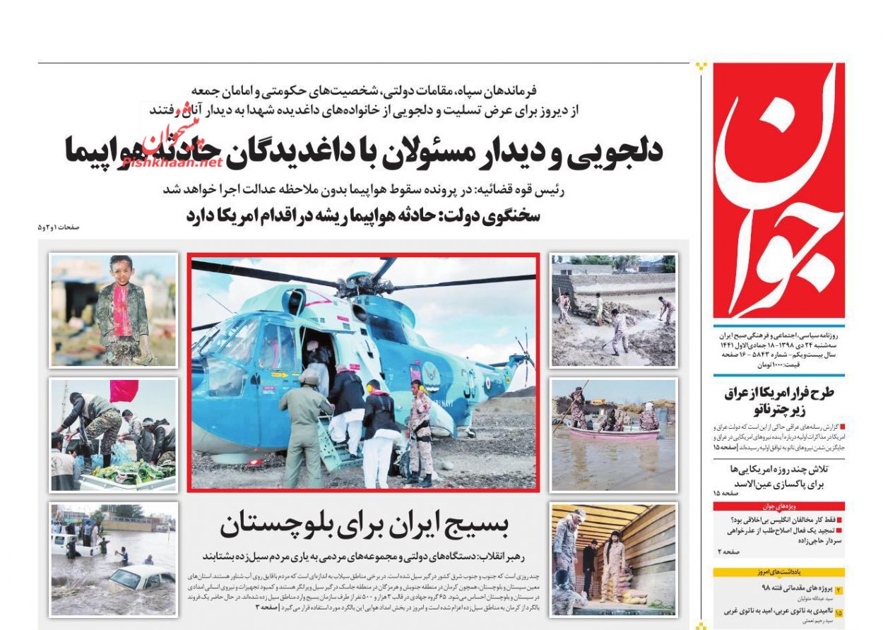 سرویس جامعه جوان آنلاین: فرمانده کل سپاه در مجلس گفت به همه فرماندهان سپاه استانی دستور داده است با دیدار با خانوادههای داغدار پرواز بوئینگ ۷۵۲ از آنها تفقد و دلجویی کنند. چند روز گذشته امامان جمعه هم با حضور در خانه خانوادههای داغدیده با آنها ابراز همدردی کردند. معاون اول رئیسجمهور هم در جمع دو تن از خانوادههای جانباختگان حاضر شد و به آنها تسلیت گفت. این روند که از دو سه روز گذشته شروع شده ادامه خواهد داشت. همه اینها علاوه بر مراسمهای خودجوش مردمی است که در مساجد و حسینیهها و مهدیهها برپا شده تا یاد و خاطره شهدای حادثه هوایی را گرامی بدارند و مرهمی هرچند کوچک بر تألم خاطر بازماندگان این حادثه باشند.۱۷۶ مسافر و خدمه پرواز بوئینگ ۷۵۲ خطوط هوایی اوکراین سحرگاه چهار شنبه گذشته در اثر اشتباه سهوی اپراتور پدافند هوایی در شلیک موشک به این هواپیما شهید شدند. گمانهها از همان ابتدای این حادثه مبنی بر اصابت موشک به هواپیما در فضای مجازی مطرح شد، تا اینکه در نهایت فرمانده هوافضای سپاه با تشریح جزئیات حادثه، اصابت موشک به این هواپیما را در اثر یک اشتباه سهوی تأیید و ضمن آن عذرخواهی عمیق کرد و گفت «آرزو داشت در همان پرواز میبوده و میمرده است، اما شاهد این اتفاق نمیبود»
