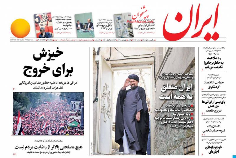 میلیونها نفر از مردم عراق در یک همبستگی کم نظیر، با برپایی تظاهرات در میادین مهم بغداد، یکصدا خواهان خروج نظامیان امریکایی از خاک کشورشان شدند. این تظاهرات در حالی انجام شد که اواخر هفته گذشته، رئیسجمهوری عراق بهخاطر دیداری با دونالد ترامپ در حاشیه نشست داووس، خشم مردم و دولتمردان عراقی را برانگیخت.