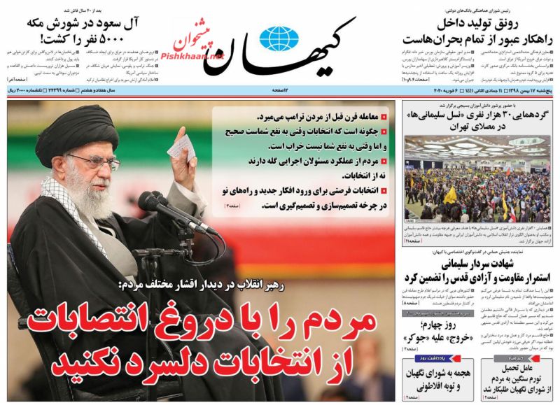 کسانی که با گفتار و رفتار خود مردم را دلسرد میکنند، همکاران بیجیره و مواجب ترامپند و از این بابت باید شرمنده و عذرخواه باشند. همانطور که رهبر انقلاب دیروز تأکید کردند؛ «از دشمن نمیشود گلایه کرد اما فلان نویسنده، مرتبطین با فضای مجازی، نماینده مجلس و فلان مسئول مهم دولتی باید مراقب باشند و اینجور نشود که بگوییم مردم شرکت کنید اما در عین حال، به غلط، جوری حرف بزنیم که مردم از حضور در انتخابات دلسرد شوند.»