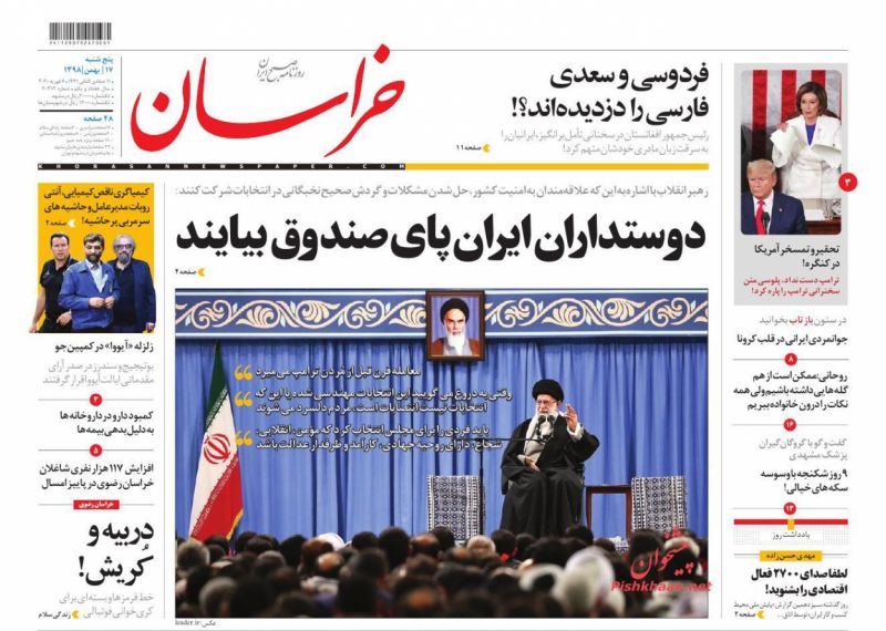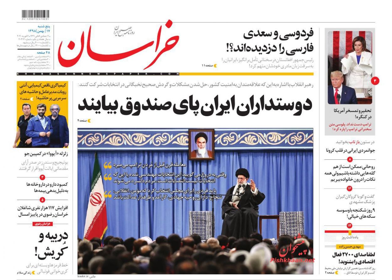 کامیار-نطق سالانه ترامپ در کنگره با حواشی بسیار برگزار شد. حواشی که متن را تحت تاثیر قرار داد و سبب شد که قانون گذاران آمریکایی در صفحات مجازی یکدیگر را متهم به تحقیر ایالات متحده کنند اما در نهایت پلوسی در یک کلام گفت مودبانه ترین پاسخ را به ترامپ داده ام!از دست ندادن به رئیس مجلس نمایندگان تا سنت شکنی در یک مجلس سنتی و تاریخی تا پاره کردن سخنرانی او از سوی نانسی پلوسی و... از حاشیه های سخنرانی سالانه ترامپ بود. در کنار این ها سفیدپوشان کنگره مانند هر سال حضور داشتند، نمایندگانی که به نشانه اعتراض به سیاست های ترامپ لباس های سفید بر تن می کنند و در مقابل نیز ملانیا ترامپ بانوی اول آمریکا پیراهنی مشکی به تن داشت.نطق امسال ترامپ مانند سال گذشته بار دیگر با محور ایران همراه بود، ترامپ در این نطق شهادت سردار سلیمانی را دستاورد مثبت دیپلماسی خود بیان کرد و همین طور جنگ تجاری با چین را برای آمریکا موفقیت آمیز خواند. او بار دیگر مانند هرسال مسئله دیوار مکزیک را پیش کشید و درباره نفتا هم اظهاراتی را مطرح کرد که از نظر دموکرات ها همگی این ها خلاف اصول سیاست خارجی ایالات متحده است. واکنش ها به حاشیه ها نانسی پلوسی هنگام خروج از کنگره پس از سخنرانی ترامپ، در گفتوگو با خبرنگاران درباره علت پاره کردن متن سخنرانی رئیس جمهوری آمریکا گفت: این مودبانهترین کاری بودکه میشد در پاسخ به حرفها و اقدامات ترامپ انجام داد.رسانه های غربی به ویژه آمریکایی همگی به حاشیههای جنجالی سومین نطق سالانه ترامپ در مکانی که تا چند روز پیش جلسه دادگاه وی برگزار شد، پرداختند و گزارش دادند که «حرفهای شعارگونه ترامپ» با واکنش سرد و جنجالی دموکراتها همراه شد.شبکه فرانس۲۴ نوشت: ترامپ درحالی در شعاری از بازگشت شکوهمند آمریکا حرف زد که نانسی پلوسی نطق او را پاره کرد. بیشتر رسانههای غربی و آمریکایی به صحنه پاره کردن متن سخنرانی ترامپ از سوی رئیس مجلس نمایندگان آمریکا متمرکز شدند و کمتر به علت این مسئله پرداختند.شبکه سیانان گزارش داد، زمانی که نانسی پلوسی برای گرفتن متن این سخنرانی دست خود را به سمت ترامپ برد، رئیس جمهوری بدون اعتنا، از دست دادن با او خودداری کرد و از وی رو گرداند. تد کروز سناتور جمهوری خواه آمریکا در واکنش اقدام نانسی پلوسی در پاره کردن متن سخنرانی ترامپ گفته، این کار رئیس مجلس نمایندگان سبب توهین و تحقیر آمریکاست.«کار پلوسی، نشان داد که دموکراتها خواهان تحقیر و توهین به آمریکا هستند.» هیل نیز در نوشتاری، رفتار ترامپ با رئیس مجلس نمایندگان در دست ندادن با او و در مقابل پاره کردن متن سخنرانی ترامپ توسط نانسی پلوسی را اعلان بیاعتمادی عمیق بین کاخ سفید و مجلس نمایندگان توصیف کرد. چند جمهوری خواه ارشد کنگره نیز به پلوسی حمله کردند و کارهای او را "مفتضح" و "حقیر" خواندند. انتشار عکسی از سیمپسون ها! کاخ سفید، مایک پمپئو و جمهوری خواهان کنگره اقدام جنجالی پلوسی در پاره کردن کپی از متن سخنرانی سالانه ترامپ را محکوم کردند.حساب رسمی کاخ سفید در توئیتر در واکنش به اقدام پلوسی، نوشت: "پلوسی با پاره کردن این متن به این ها توهین کرد؛ یکی از آخرین خلبان های آمریکایی بازمانده از جنگ جهانی دوم. زنده ماندن نوزادی که در هفته بیستویکم بارداری به دنیا آمد. خانوادههای عزادار راکی جونز و کایلا مولر. پیوستن یک نظامی به خانوادهاش. این ها میراث نانسی پلوسی هستند."این توئیت در واقع اشاره به چندین نفر از مهمانان حاضر در جلسه سخنرانی ترامپ از جمله اعضای خانواده مردی کشته شده توسط یک مهاجر غیرقانونی و یک امدادگر کشته شده توسط ابوبکر البغدادی داشت.این در حالی است که پمپئو، هم در واکنش به این اقدام نانسی پلوسی تصویری از پویانمایی آمریکایی "خانواده سیمپسون ها" را منتشر کرد.تصویری که پمپئو منتشر کرده یکی از شخصیت های این پویانمایی به نام "لیزا سیمپسون" را نشان میدهد که با چشمانی اشکبار در حال پاره کردن یک برگه کاغذ است.این تصویر برداشته شده ا
