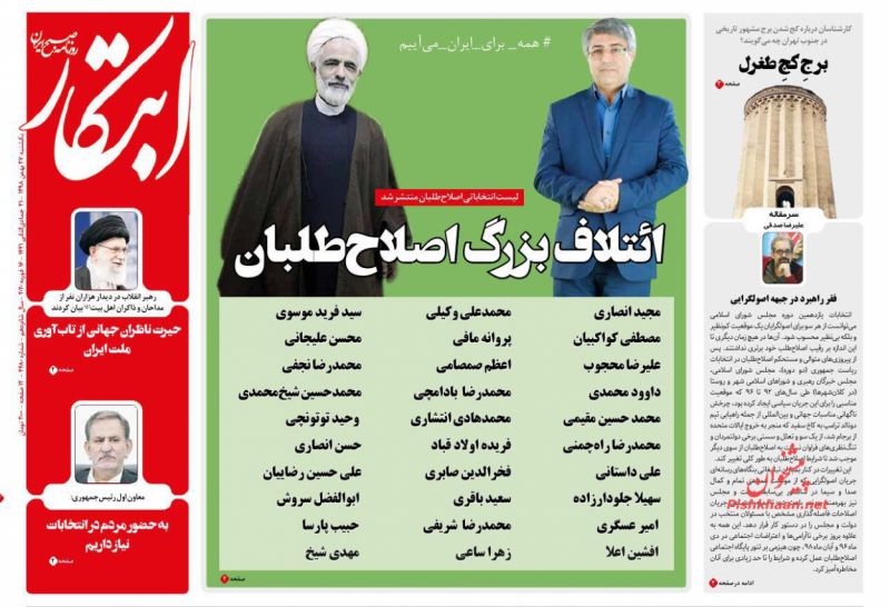 لیست انتخاباتی اصلاحطلبان منتشر شد ائتلاف بزرگ اصلاحطلبان