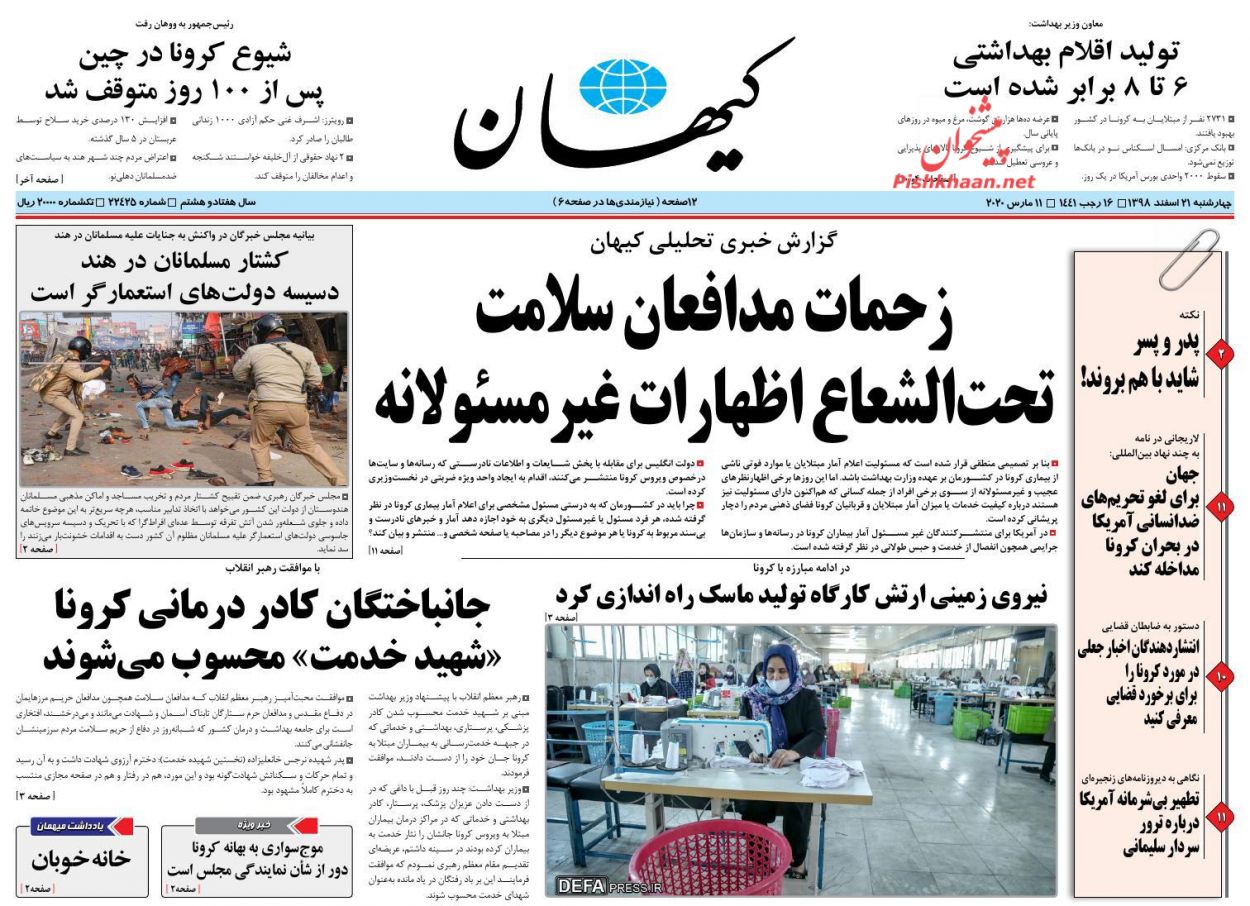 زحمات مدافعان سلامت تحتالشعاع اظهارات غیرمسئولانه