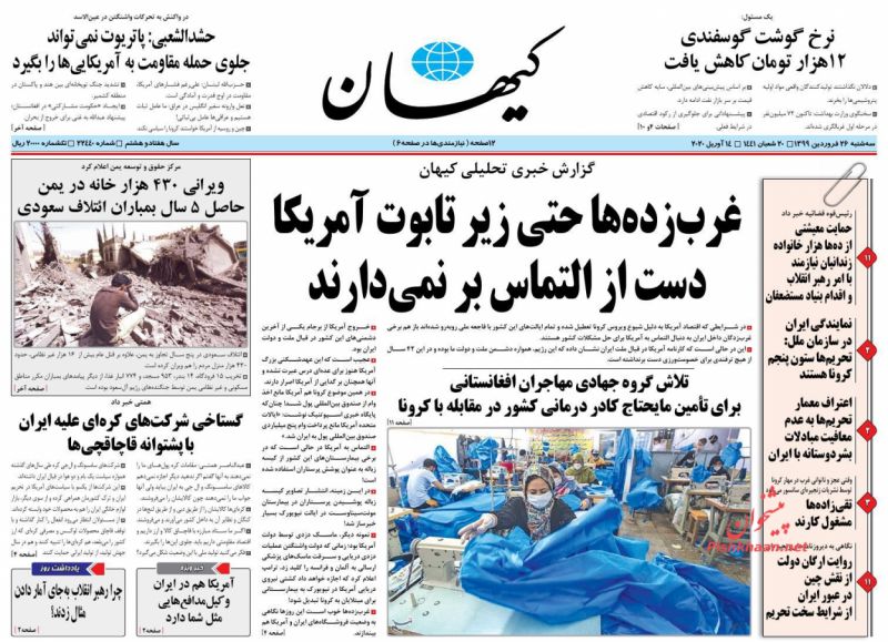 روزنامه همشهری نیز با «هشدار نسبت به خطای تصمیمگیری و انحراف منابع در عملیات نجات مجروحان اقتصادی کرونا» نوشت: عملیات نجات مجروحان اقتصادی جنگ با کرونا در کشور با اولویت تامین نقدینگی واحدها و بنگاههای آسیب دیده در حال اجرایی شدن است با این حال هنوز درباره خون رسانی به بنگاههای مجروح شده و از نفس افتاده تردیدهای جدی وجود دارد.