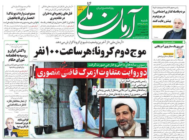 آرمان ملي: يک رسانه آمريکايي گزارش داد که جسد غلامرضا منصوري، قاضي سابق ايراني در روماني پيدا شده است. قاضي غلامرضا منصوري قرار بود بهمنظور پاسخگويي به اتهامات خود به ايران بازگردد. قاضي منصوري متهم به دريافت پانصدهزار يورو رشوه شده است. حساب کاربري رسمي «راديو فردا» در توئيتر به نقل از خبرنگار خود در بخارست مدعي شد که جسد غلامرضا منصوري، قاضي ايراني که قرار بود بهمنظور پاسخگويي به اتهامات خود به ايران بازگردد، در روماني پيدا شده و هويت جسد نيز به تاييد رسمي رسيده است. اين رسانه مدعي شد منصوري از پنجره به بيرون پرت شده است. وي به دريافت 500هزار يورو رشوه متهم است و پس از تشکيل دادگاه اکبر طبري، معاون اجرايي سابق قوه قضائيه، نام وي بر سر زبانها افتاد و مشخص شد که در خارج از کشور به سر ميبرد. پس از آن، گزارشهايي مبني بر بازداشت او در روماني منتشر شد، اما قاضي دادگاهي در شهر بخارست تصميم گرفت اين متهم تا تاريخ 20 تيرماه تحت شرايط خاصي آزاد باشد. قاضي رومانيايي از ايران خواسته بود مدارک مربوط به درخواست استرداد او را تا آن زمان به دادگاه ارائه کند.پليس ايران: خودکشي است