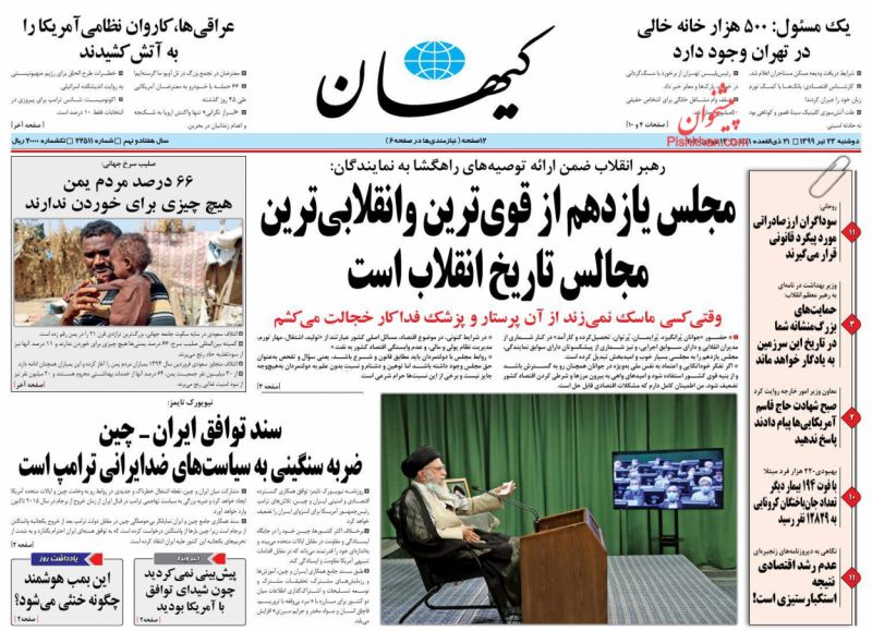 این یک فرصت مناسب برای ایران است تا روابط خود را با چین گسترش داده و به خصوص در حوزه همکاریهای بهداشتی و راهبردی و تهاتر نفت بیش از پیش فعال شود. در این شرایط باید سطح روابط با چین را ارتقا داد تا در چالشهای موجود با غرب نیز بتوان از اهرمهای سیاسی و اقتصادی قویتری برخوردار بود. اگر این ملکسازی قانونی بود چرا شهرداری تخریب کرد؟