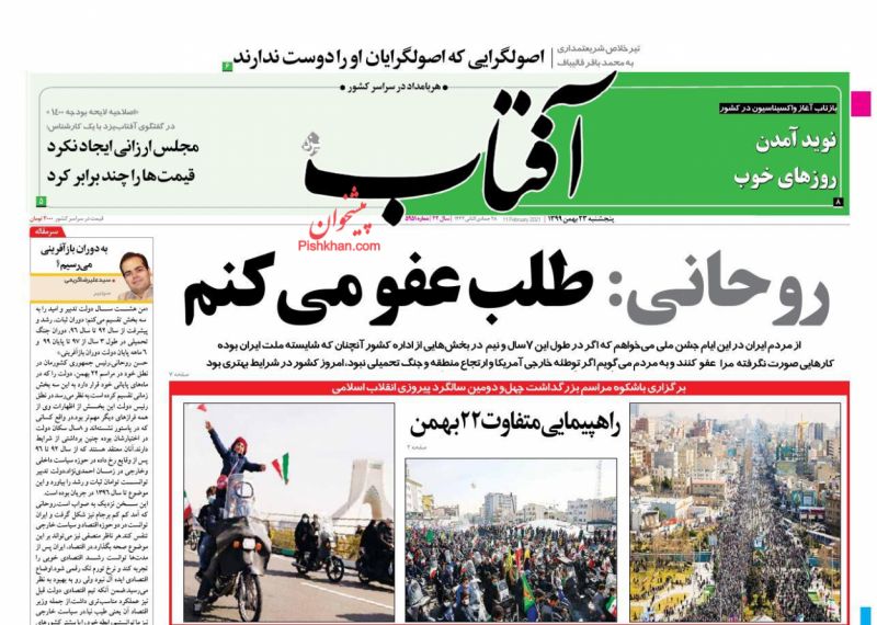 رئیس جمهوری در مراسم بزرگداشت سالگرد پیروزی انقلاب اسلامی با دفاع از عملکرد دولت تدبیر و امید در طول دوران خدمت، به بیان ناگفتههایی از وضعیت اقتصادی کشور به ویژه در سه سال اخیر به عنوان «سه سال جنگ» پرداخت و از همه رسانهها خواست واقعیتها را بگویند و به تاریخ و مردم «خیانت» نکنند.به گزارش ایرنا، حسن روحانی در نطقی که به دلیل شرایط کرونایی کشور و با تصمیم ستاد ملی مدیریت کرونا به صورت تلویزیونی و زنده پخش شد، گفت: آغاز چهل و سومین سال انقلاب اسلامی ایران، با رنگ و بوی جدیدی روزهای خود را آغاز کرده است. دورانی که به دلیل پروتکلهای بهداشتی مردم عاشق انقلاب و امام نتوانستند آنطور که مورد نظر آنها بود به خیابانها بیایند و احساسات پاک خود را نشان دهند. البته به صورت دیگر و با شکل دیگر این حضور پرشور در سراسر کشور در همین لحظات در جریان است. وی با اشاره به تفاوتهای آغاز چهل و سومین سال انقلاب اسلامی با سالهای قبل افزود: امسال سال ۱۳۹۹ است، انقلاب ما هم در سال ۱۳۹۹ به پیروزی رسید. سالی که انقلاب پیروزی شد ۱۳۹۹ قمری بود و امسال ۱۳۹۹ هجری شمسی است.