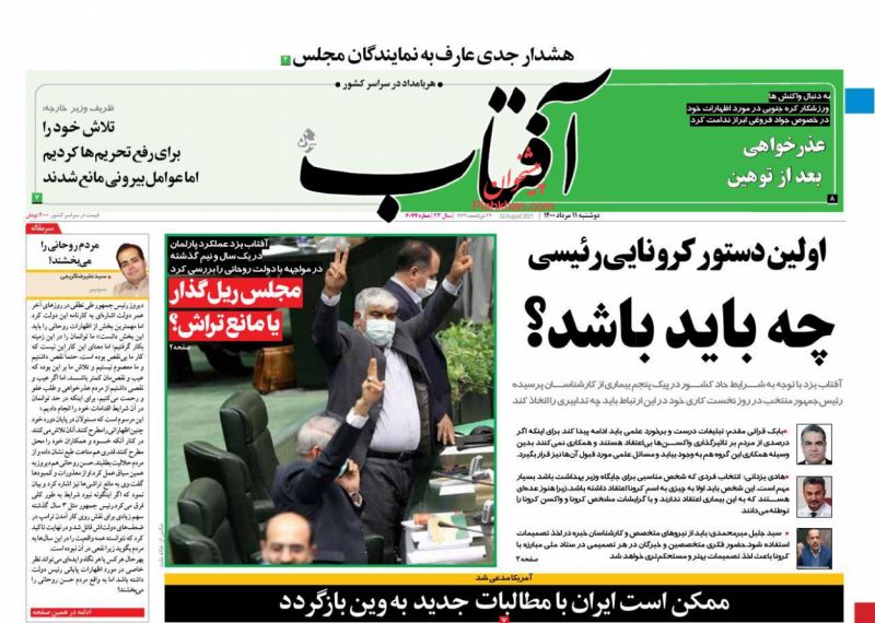 بابک قرائی مقدم پزشک و کارشناس در این باره به آفتاب یزد گفت:«به نظر من دولت آقای رئیسی باید ابتدا واکسیناسیون را به صورت جدی پیگیری کنند.روند واکسیناسیون در کشور باید سرعت پیدا کند یعنی هم ورود واکسنهای خارجی گسترش پیدا کند و هم سرعت تولید واکسنهای داخلی بیشتر شود.در حقیقت تسریع واکسیناسیون باید یکی از مهمترین اولویتهای دولت بعدی در زمینه کنترل این بیماری باشد.دومین مسئله این است که با توجه به نفوذی که ایشان و دولت شان در طیف خاصی از مردم دارند و با توجه به نزدیکی به ایام محرم و صفر به نظر میرسد باید رعایت مردم در تجمعات مذهبی و پرهیز از سفر مورد توجه و کنترل قرار بگیرد. هر نوع تجمعی میتواند موجب انتقال این بیماری شود و باید تجمعات در فضای باز و تجمعات مجازی جایگزین شوند.همچنان یک عدهای در جامعه زیر پوشش مسائل مذهبی به دنبال آن هستند که اصل مسئله کرونا را زیر سوال ببرند و این بسیار برای جامعه خطرناک است.باید مسائل علمی به جدیت دنبال شود و در صورت لزوم با توجه به شدت بیماری با تجمعات مقابله شود.تبلیغات درست و برخورد علمی باید ادامه پیدا کند برای اینکه اگر درصدی از مردم بر تاثیرگذاری واکسنها بیاعتقاد هستند و همکاری نمیکنند بدین وسیله همکاری این گروه هم به وجود بیاید و مسائل علمی مورد قبول آنها نیز قرار بگیرد. »