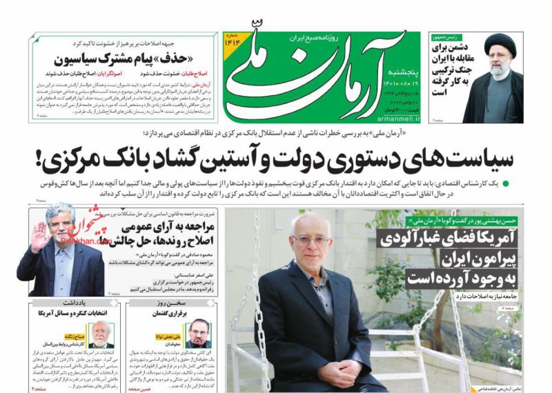 آرمان ملي- حميد شجاعي: بسياري از تحليلگران، کارشناسان و چهرههاي سياسي معتقدند که امروز جامعه با مسائل و مشکلاتي در حوزههاي مختلف روبهرو است که به باور عدهاي برخي مسائل از مشکل و چالش عبور کرده و به ابر چالش رسيده است. شاهد مثال اين مساله را نيز ميتوان در حوزه مسائل زيست محيطي و منابع دانست که بحران آب و زيست بوم يکي از مسائلي است که بايد به جديت در مورد آن چارهانديشي کرد و راهکارهاي عملياتي براي حل آن يافت. اين در حالي است که در حوزههاي سياسي، اقتصادي، اجتماعي، فرهنگي و... نيز با مسائلي روبهرو هستيم که بايد در مواجهه با اين حوزهها نيز اصلاحات و تغييرات رويکردي و عملکردي را لحاظ کرد. لذا کسر قابل توجهي از کارشناسان و صاحبنظران معتقدند که براي حل بسياري از مسائل مورد چالش و اختلافي ميان قوا يا جامعه ميتوان از ظرفيتهاي مغفول مانده؛ اما مترقي قانون اساسي استفاده کرد و حل مسائل را به نحو بهتري تسريع کرد. اما معلوم نيست که چرا هر زمان صحبت از بازگشت به قانون اساسي و استفاده از ظرفيتهاي اين قانون بالادستي و مادر سخن به ميان ميآيد برخي افراد و جريانها چندان روي خوشي به اين مساله نشان نميدهند. در حالي که در خود قانون اساسي نيز اصولي وجود دارد که مراجعه به آنها خود ميتواند حلال بسياري از مشکلات باشد. اصولي مانند اصل 59 که از همه پرسي و رفراندوم ميگويد. حتي قانون اساسي در اصل 177 خود از بازنگري در خود اين قانون ميگويد و سياسيون نيز بارها به اين مساله اشاره داشتند که با گذشت 33 سال از آخرين بازنگري در اين قانون؛ با توجه به شيب تند تغييرات در حوزههاي مختلف باز هم ميتوان يک بازنگري در قانون اساسي داشت. اما امروز برخي معتقدند که در برخي از امور در حوزه سياست داخلي، خارجي، اقتصادي فرهنگي و اجتماعي ميتوان به اصل 59 قانون اساسي مراجعه کرد و از طريق مراجعه به آراي عمومي در پي حل و فصل مشکلات برآمد. البته با توجه به شرايط امروز جامعه و مطالبات مردم ميتوان دريافت که در برخي از حوزهها ميتوان از همهپرسي و مراجعه به آراي عمومي استفاده کرد. چه اينکه امام (ره) نيز همواره از نقش و تاثير بيبديل مردم در اداره امور جامعه سخن گفتهاند. حال بايد ديد که اساسا عزمي براي اين مهم وجود خواهد داشت و در چه اموري شاهد همهپرسي خواهيم بود.مردميتر شدن حکمراني بر رفراندوم مقدم است