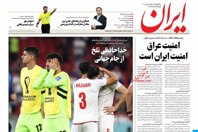 گروه ورزشی/ تیم ملی فوتبال کشورمان، در سومین بازی اش در گروه B جام جهانی ۲۰۲۲ قطر، از ساعت ۲۲:۳۰ دیشب در ورزشگاه الثمامه دوحه به مصاف امریکا رفت که قضاوت این بازی را آنتونی متئو لاهوز، داور ۴۵ ساله اسپانیایی بر عهده داشت و روبرتو دیاز پرز دل پالمار و پائو دیویس کمک داوران این بازی بودند.ایران در حالی در این مسابقه به میدان رفت که کارلوس کی روش تیمش را با ترکیب علیرضا بیرانوند، احسان حاج صفی، میلاد محمدی، مرتضی پورعلی گنجی، سید مجید حسینی، رامین رضاییان، احمد نوراللهی، سعیدعزتاللهی، علی قلیزاده، مهدی طارمی و سردار آزمون روانه زمین کرد تا تنها تغییرش نسبت به بازی با ولز، بازگشت بیرانوند به درون دروازه به جای سید حسین حسینی باشد. امریکا هم با مت ترنر، سرجینیو دست، تایلر آدامز، آنتون رابینسون، یونس موسی، وستون مککنی، کریستین پولیشیچ، تیم ریم، کامرون کارتر ویکرس، تیموتی وهآ و جاشوا سرجنت، این بازی را آغاز کرد. در نیمه اول این مسابقه توپ و میدان در اکثر دقایق مسابقه در اختیار امریکایی ها بود و ملی پوشان ایران چشم به ضد حمله داشتند. در این شرایط، ایران موقعیت خاصی به دست نیاورد و امریکا در دقیقه ۳۸ به گل رسید. به این ترتیب که ضربه سر «دست» از سمت راست در محوطه شش قدم به پولیشیچ رسید و این ستاره چلسی، با ضربه پای راست موفق شد دروازه را باز کند تا امریکا را پیش بیندازد. دقیقه 3+45 و با مصدومیت محمدی اولین تعویض ایران انجام شد و علی کریمی به جای او به میدان آمد. امریکا در ادامه و در دقیقه ۶+۴۵، بازهم به گل رسید اما گل تیموتی وهآ آفساید اعلام شد تا نیمه اول 1-0 به نفع امریکا به پایان برسد. با شروع نیمه دوم، سامان قدوس به جای آزمون به میدان آمد. دقیقه 71 و72 هم مهدی ترابی و ابوالفضل جلالی جایگزین نوراللهی و حاج صفی شدند. در ادامه ایران برای رسیدن به گل تساوی تلاش زیادی انجام داد اما به هدف نرسید تا این بازی با همان نتیجه 1-0 به پایان برسد و تیم ملی پایان تلخی در جام جهانی 2022 داشته باشد.