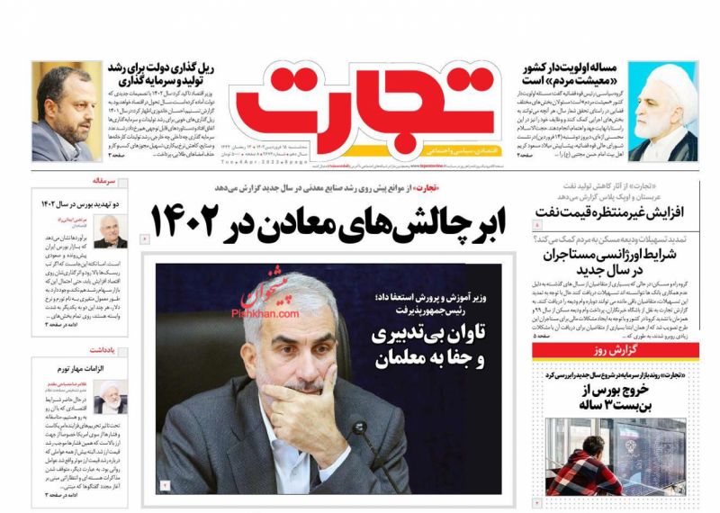 اما یک کارشناس بازار سرمایه درباره وضعیت این روزهای بورس گفت: سهامداران با هدف سرمایه گذاری بلندمدت اقدام به خرید سهام کرده و از خرید و فروش نوسانی سهام دوری کنند. سید جواد درواری، کارشناس بازار سرمایه در گفتگو با ایبِنا گفت: بازار سرمایه در حال حاضر درگیر چالشها و عواملی مانند عدم وجود نقدینگی، افزایش نرخ بهره بینبانکی، نوسانات نرخ ارز، قیمتگذاری دستوری تولیدات و محصولات شرکتها، تأمین مواد اولیه برخی صنایع، مباحث پیرامون نرخ انرژی صنایع در بودجه، کسری بودجه دولت، فروش اوراق بدهی و ... است. درواری تصریح کرد: باوجود اینکه قیمت سهام بسیاری از شرکتها ارزنده هستند، سرمایهگذاران ارزیابی و پیشبینی خود نسبت به حال و آینده را با درجه ریسک بسیار زیاد میبینند و با احتیاط بسیار زیادی اقدام به سرمایهگذاری در این بازار میکنند.
