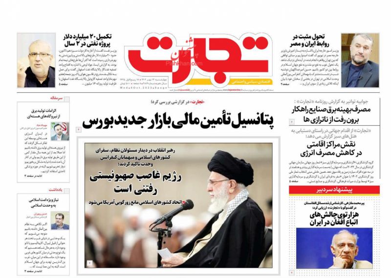 رهبر انقلاب اسلامی علت این کینه و عصبانیت را ممانعت کشورها در برهههای مختلف از تحقق هدف آنها یعنی غصب نیل تا فرات خواندند و افزودند: آنها سرشار از کینه و غیظ هستند؛ البته به تعبیر قرآن که میگوید «خشمگین باشید و از این خشم بمیرید» آنها در حال مرگ هستند و به یاری پروردگار این آیه درباره رژیم غاصب در حال تحقق است. ایشان مسأله فلسطین و غصب و بیرون راندن ملتی از خانههای خود و شکنجه و کشتار آنها را مسأله اولِ چند ده سال اخیر دنیای اسلام خواندند و تأکید کردند: نظر قطعی جمهوری اسلامی این است دولتهایی که قمار عادیسازی روابط با رژیم صهیونیستی را سرمشق کار خود قرار دهند، ضرر خواهند کرد؛ چرا که این رژیم رفتنی است و آنها در حال شرطبندی روی اسب بازنده هستند.