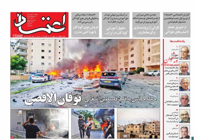 گروه سياسيپس از آغاز عمليات طوفانالاقصي شبكههاي مجازي پر شدند از تصاويري كه در آنها تصاوير فرار صهيونيستها با لباس شخصي، كشته شدن سربازان مرزي، غنيمت گرفته شدن ماشين و حتي تانكهاي اسراييلي در پاسگاههاي مرزي منعكس شده بود. مقامات اسراييلي در پاسخ به اين حمله غافلگيرانه اعلام كردند واكنشهايي تند به اين حمله حماس خواهند داشت. كنعاني، سخنگوي وزارت امور خارجه ايران اما با تبريك عمليات توفانالاقصي به ملت فلسطين و تمام گروهها و جريانهاي مقاومت تصريح كرد: «عمليات امروز صفحه جديدي را در عرصه مقاومت و عمليات مسلحانه عليه اشغالگران در اراضي اشغالي ايجاد كرد. اين موضوع بار ديگر اثبات كرد كه در چارچوب يك اقدام جدي عملياتي صهيونيستها به چه ميزان شكننده هستند و از روحيه لازم براي مقاومت برخوردار نيستند.»