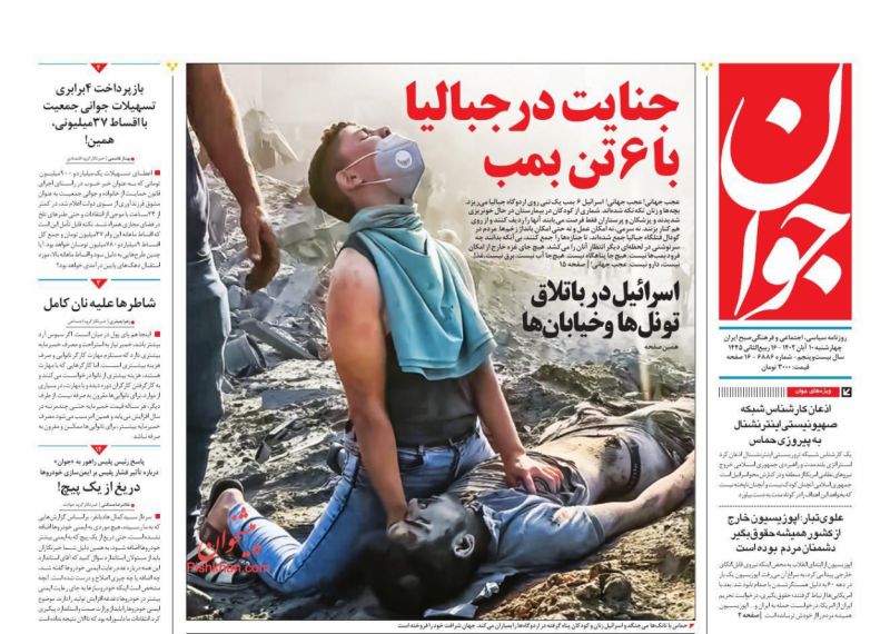 جوان آنلاین: عجب جهانی! عجب جهانی! اسرائیل چند بمب یکتنی روی اردوگاه جبالیا میریزد. بچهها و زنان تکهتکه شدهاند. شماری از کودکان در بیمارستان در حال خونریزی شدیدند و پزشکان و پرستاران فقط فرصت مییابند آنها را ردیف کنند و از روی هم کنار بزنند. نهسرمی، نه امکان عمل و نه حتی امکان بانداژ زخمها. مردم در گودال قتلگاه جبالیا جمع شدهاند، تا جنازهها را جمع کنند، بیآنکه بدانند چه سرنوشتی در لحظهای دیگر انتظار آنان را میکشد. هیچجای غزه خارج از امکان فرود بمبها نیست. هیچجا پناهگاه نیست. هیچجا آب نیست، برق نیست، غذا نیست، دارو نیست. عجب جهانی!در بیست و ششمین روز حملات اسرائیل به غزه، آمار شهدا و زخمیها از مرز ۳۰ هزار نفر عبور کرد تا برگ دیگری در کارنامه سیاه اشغالگران ثبت شود. در تازهترین جنایت، جنگندههای صهیونیستی دیروز اردوگاه جبالیا واقع در شمال غزه را با شش موشک یک تنی بمباران کردند که بیش از ۴۰۰ شهید و زخمی برجای گذاشت.