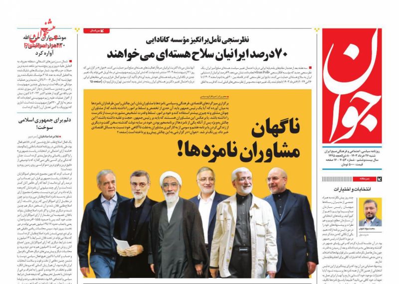 در واقع وقتی یک رئیسجمهور به میزانی بیش از نیاز و ضرورت تحت تأثیر مشاوران و متخصصانی که در اطراف خود به کار میگیرد باشد، ممکن است کسی مانند شکوریراد که زمانی درباره ٨٠شهید بسیجی- انتظامی در سال ۱۴۰۱ میگفت «اینها که صدا و سیما بهشون شهید میگوید کسانی هستند که رفتند داخل معترضان قرآن و پرچم آتش بزنند، گلوله خوردند»، به او در جایگاه معاون تبلیغات از جنس همین مشاورهها بدهد که در هیچ عقل سالمی جا نمیگیرد. اخیراً شکوریراد به عنوان معاون تبلیغات ستاد پزشکیان منصوب شده است.