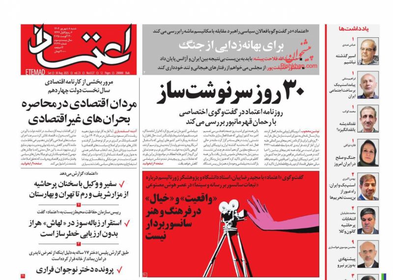 ميخواهم بگويم تجربه امروز دنيا اين است، بنابراين اگر شما ميبينيد در جايي تندروها اعمال نظر ميكنند دليلش اين است؛ «راههاي قانوني بالاي 50 درصد مسدود است» و 30 درصد باز است. هر چقدر راههاي شنيدن صداها را بازتر ميگذاريد و عرصههاي قانوني و مدني بازتر ميشوند؛ امكان بيان خواسته مطرح ميشود، ضمن اينكه سانسور فقط در عرصه سياست نيست، سانسور در عرصه اقتصادي، اجتماعي و فرهنگي و هنري هم هست، در حال حاضر در بخشهاي فرهنگي و سياسي، حساسيت بالاست؛ ولي در عرصههاي اقتصادي اجتماعي هم وضع، به همين گونه پيش ميرود.يعني حرفها و مطالباتي هست كه بايد به نهادها و مجاري قانوني راه پيدا كند و آنجا شنيده و مطرح شود و برمبناي آن راهحل برايش در نظر گرفته شود كه در اين صورت جايي براي سانسور باقي نميماند و سانسور بسيار محدود ميشود.
