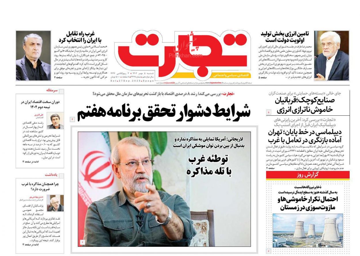 گروه سیاسی: در شرایطی که مکانیسم ماشه یا به روایت دقیقتر فعال شدن تحریمهای بینالمللی علیه ایران مطابق با قطعنامه 2231 شورای امنیت، در بامداد فردا (یکشنبه/ 7 مهر) بُعد اجرایی به خود میگیرد، هیات سیاسی کشورمان به ریاست مسعود پزشکیان در نیویورک، آخرین رایزنیها را با کشورهای غربی پیرامون بررسی شرایط آتی تعامل انجام میدهند. همزمان با تاکید مقامهای سیاسی کشورمان بر عدم مشروعیت تروئیکای اروپایی برای فعالسازی مکانیسم ماشه، بر تهران آمادگی برای بازنگری در تعامل با وضعیت جدید تاکید کردند. به گزارش «تجارت»، مسعود پزشکیان، رئیسجمهور و سید عباس عراقچی، وزیر امور خارجه کشورمان، در چند روز اخیر دیدارهای مختلفی را با هیات دیپلماتیک کشورهای غربی برگزار کردند. همزمان با این دیدارها، دیروز جمعه شورای امنیت پیشنویس قطعنامه روسیه و چین را بررسی میکند که میتواند آخرین فرصت برای جلوگیری از تشدید تنشها باشد. در سطحی دیگر، روز پنجشنبه خبرنگار «والاستریتژورنال» از احتمال بازرسی قریبالوقوع آژانس از یکی از سایتهای هستهای ایران خبر داده بود که البته این موضوع از سوی مقامهای ارشد کشورمان رد شد.