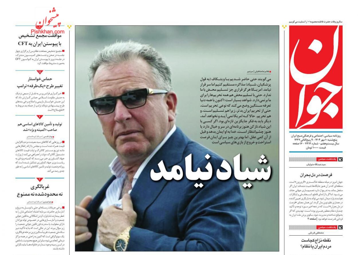 شیاد نیامد. هرگز بنا نبود آنطور بیایند که بهکار ما بیاید. اگر تا حالا میگفتیم بدون امریکا نمیشود پیشرفت کرد و اقتصاد را نجات داد و دلار را پایین آورد، حالا که امریکا نمیآید و نخواهد آمد، دیگر باید به فکر راه جایگزین بود. اگر کسی با این شیاد نازکن هنوز برنامهای دارد یا هنوز چشمانتظار است، خدا به او ایمان بدهد و قبل از آن کمی عقل؛ و بیشتر از همه فرصت استراحت و خروج از بازیهای سیاسی. | سردبیر