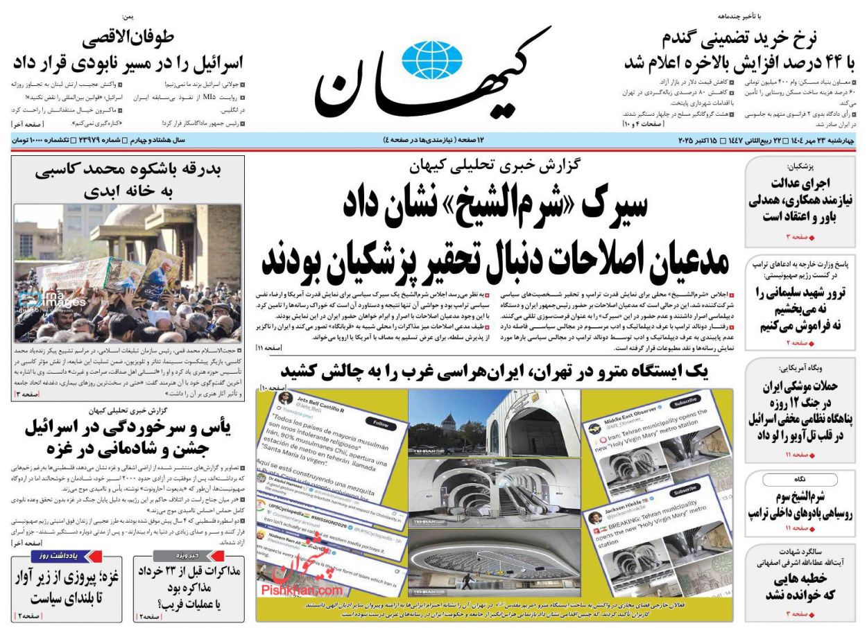 2) دیروز وبسایت رادیو فردا (ارگان سازمان سیا) نوشت: «انتقادها از غیبت در شرمالشیخ؛ روزنامه هممیهن، از عدم حضور پزشکیان و عراقچی انتقاد کرده و نوشته که این قابل پیشبینی بود. ایران خود را منزوی تعریف میکند، چون نظم موجود را نمیپذیرد... بدون حضور شما برای منطقه برنامهریزی کردند».