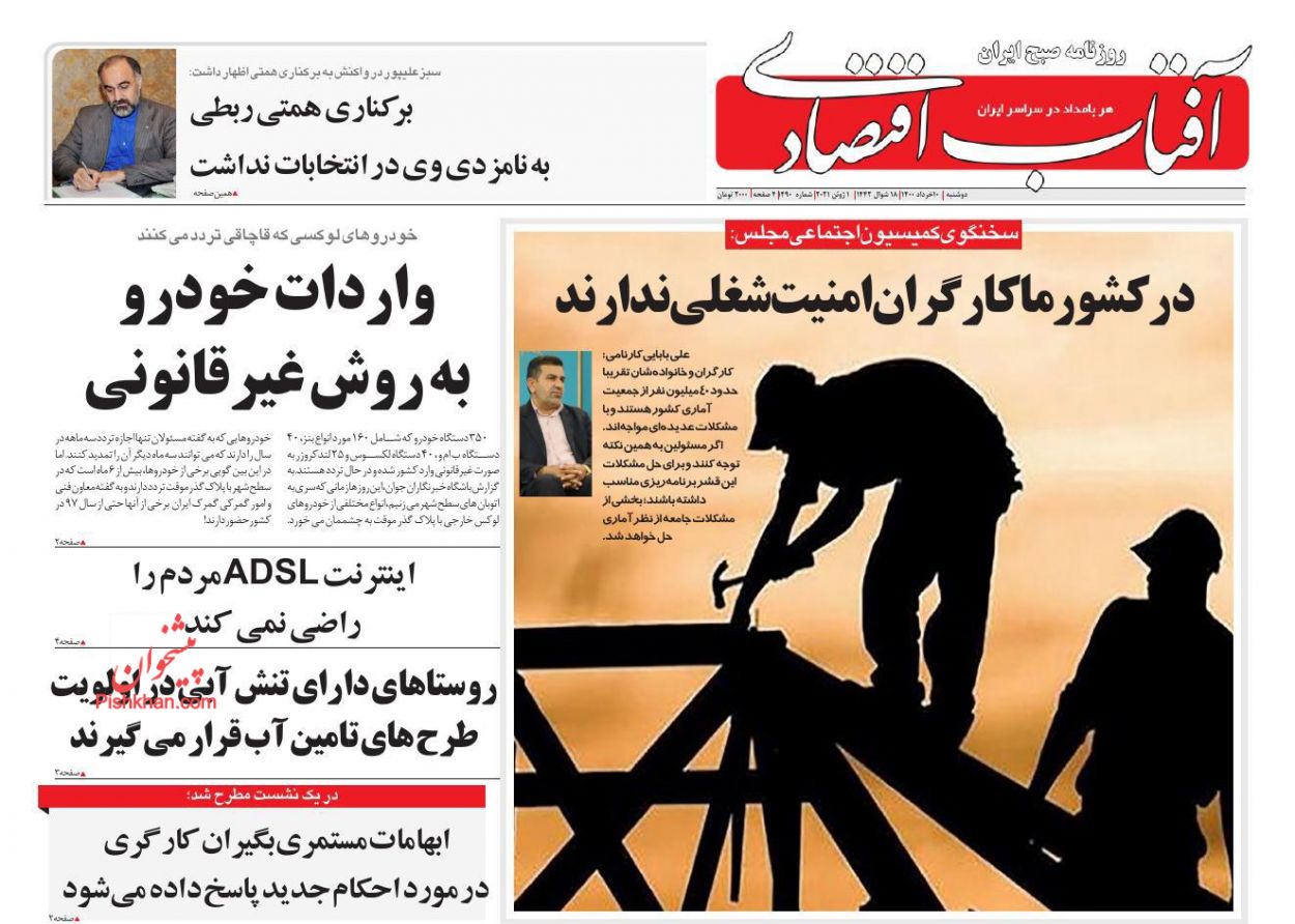آفتاب اقتصادی ، سه‌شنبه ۱۱ خرداد