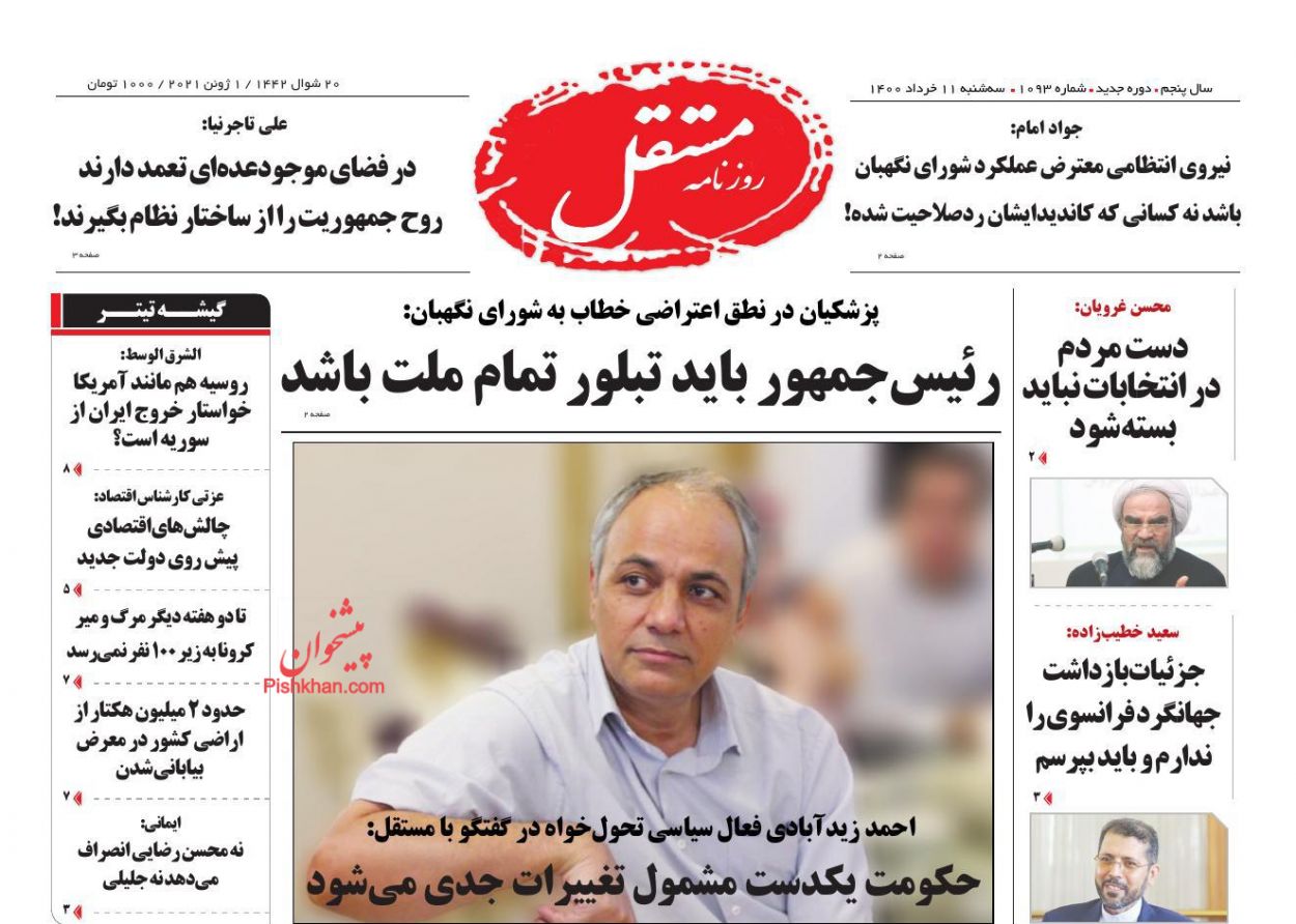 مستقل ، سه‌شنبه ۱۱ خرداد