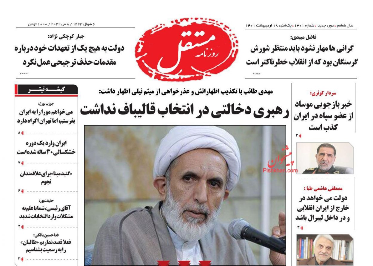 مستقل ، یکشنبه ۱۸ ارديبهشت