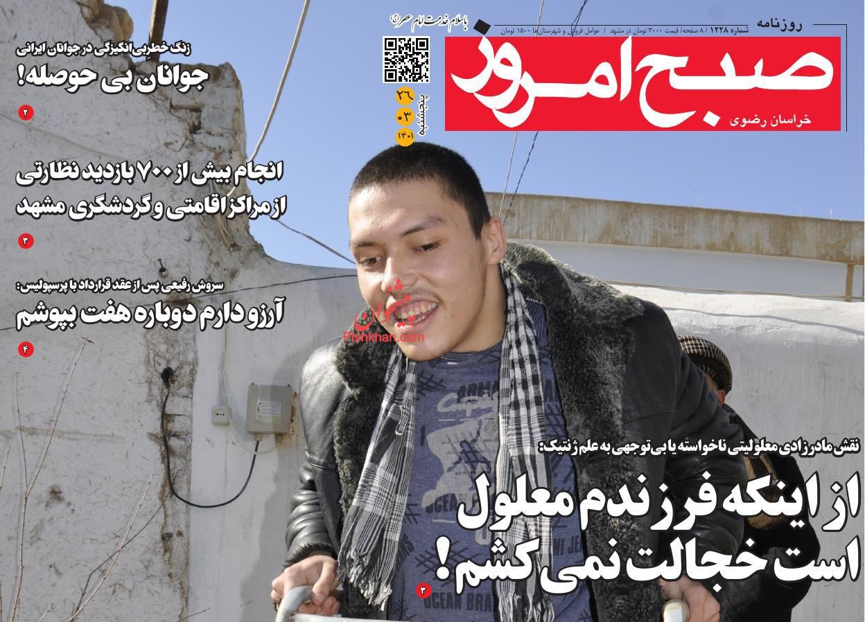 صبح امروز ، پنجشنبه ۲۶ خرداد