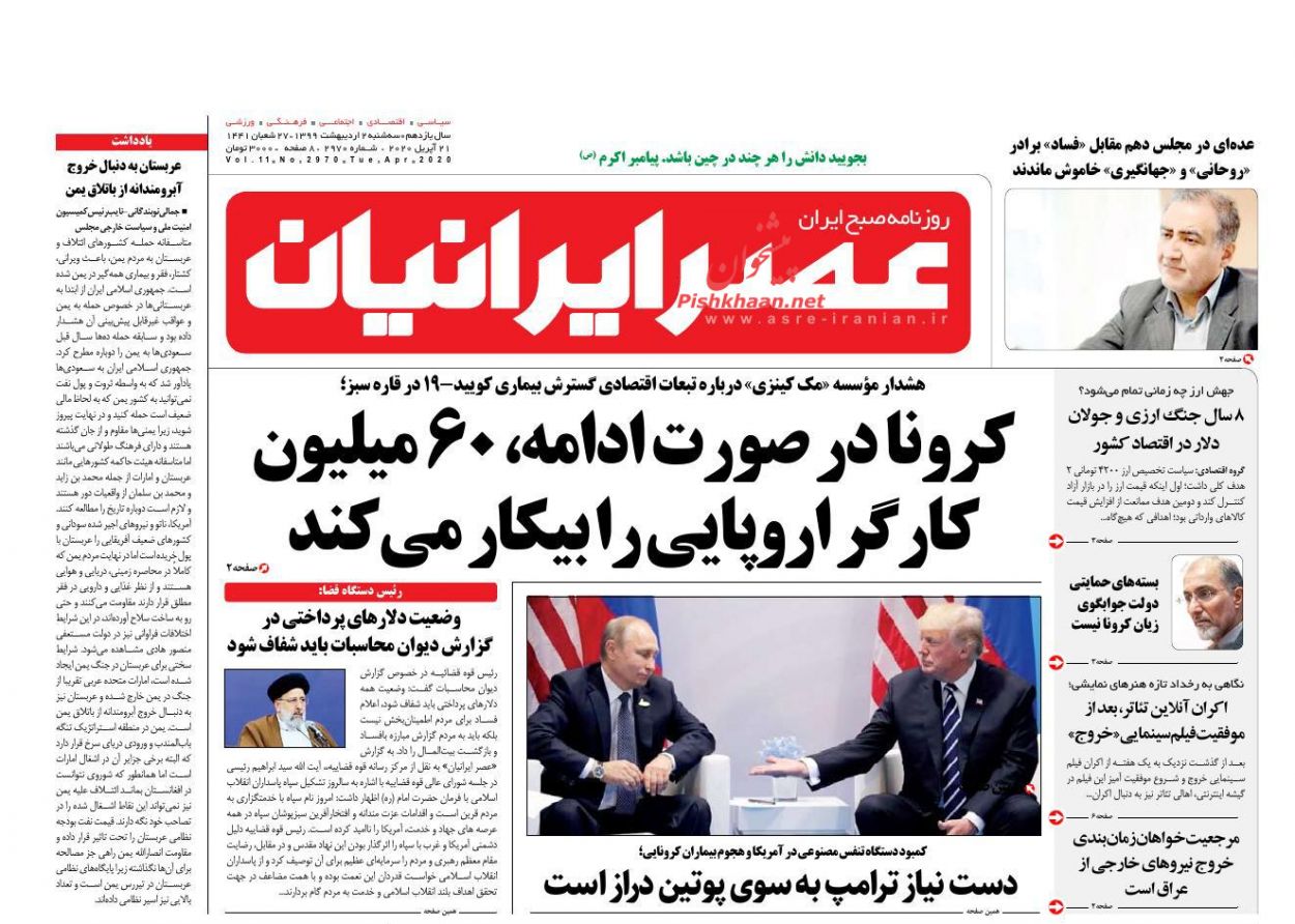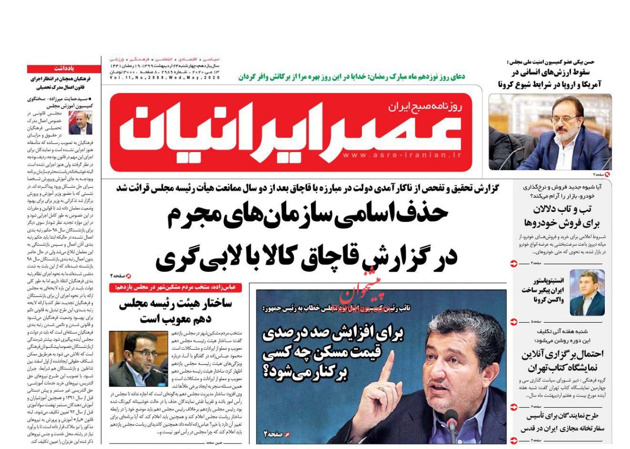 آرشیو اردیبهشت ماه ۱۳۹۹ روزنامه عصر ایرانیان