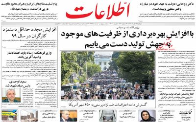 آرشیو خرداد ماه ۱۳۹۹ روزنامه اطلاعات