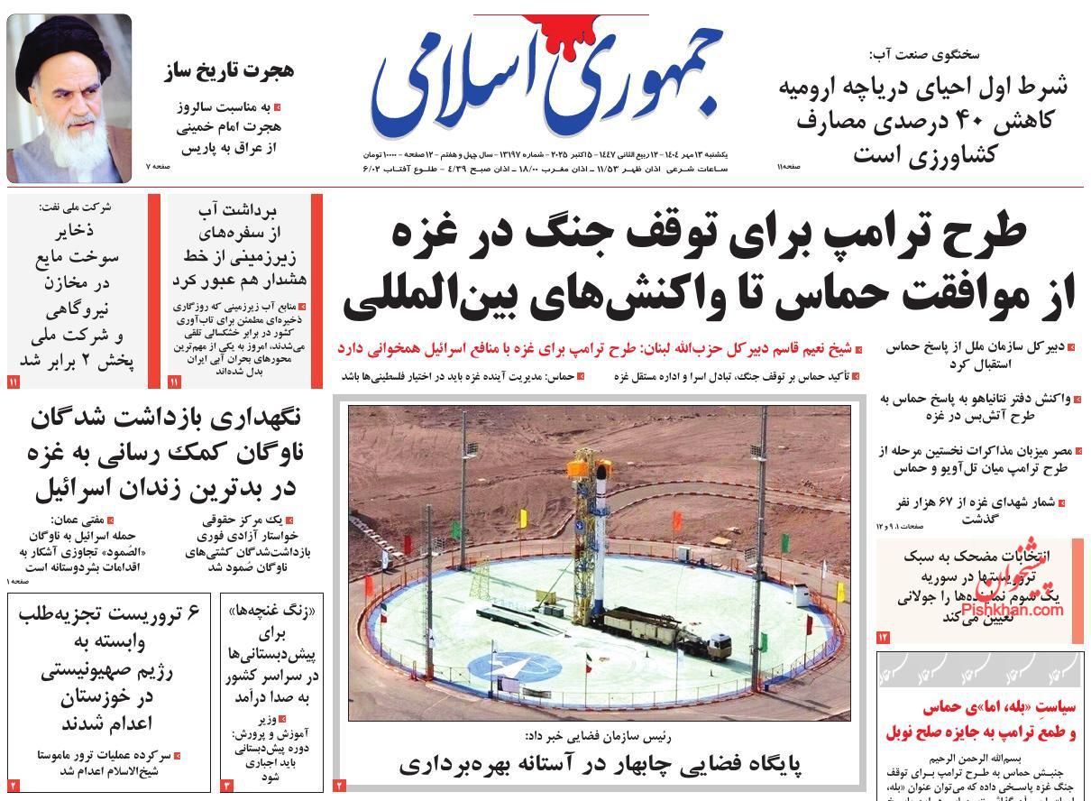 آرشیو دی ماه ۱۴۰۴ روزنامه جمهوری اسلامی