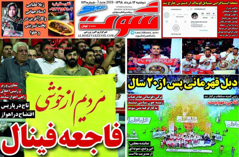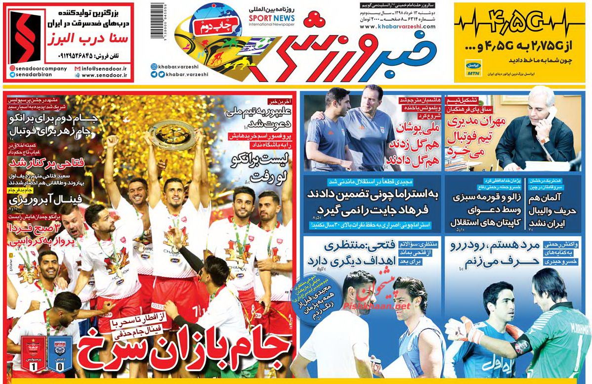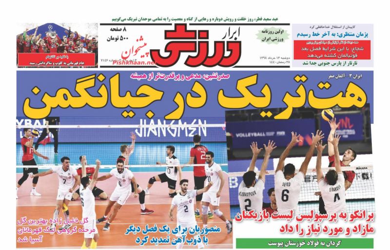 ایران ورزشی ، دوشنبه ۱۳ خرداد