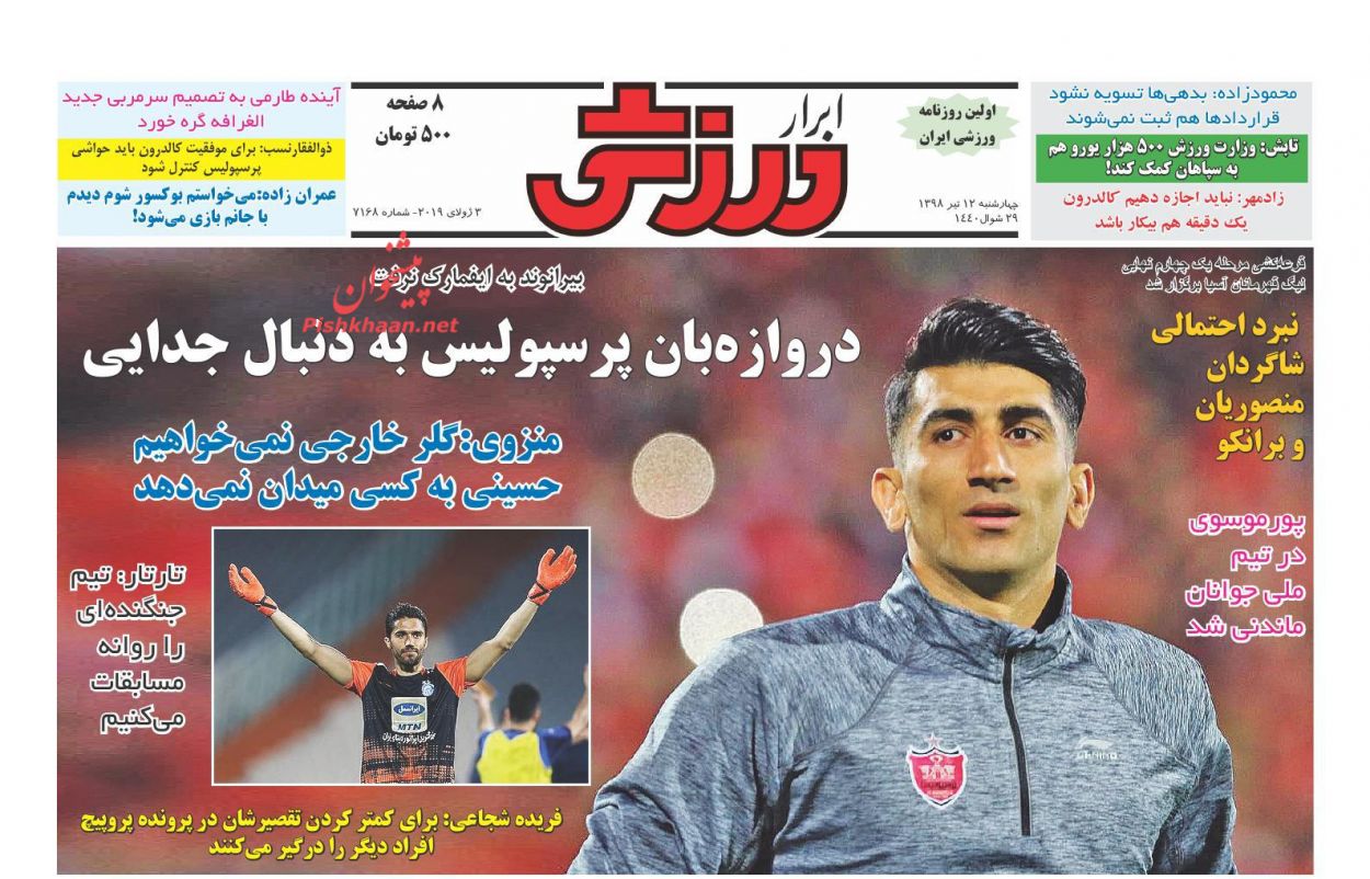 ابرار ورزشى ، چهارشنبه ۱۲ تیر