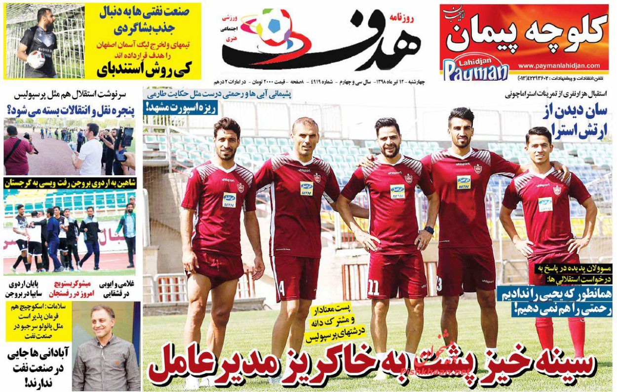 خبر ورزشی ، چهارشنبه ۱۲ تیر