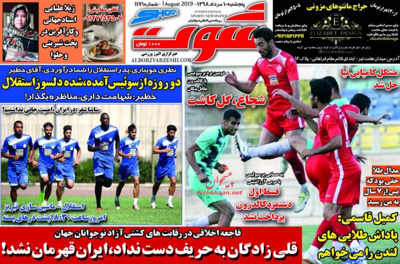 ایران ورزشی ، پنجشنبه ۱۰ مرداد