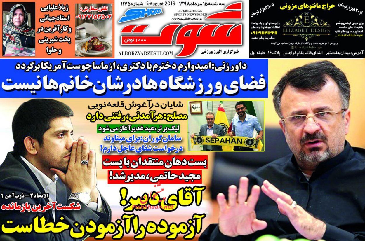 ایران ورزشی ، سهشنبه ۱۵ مرداد