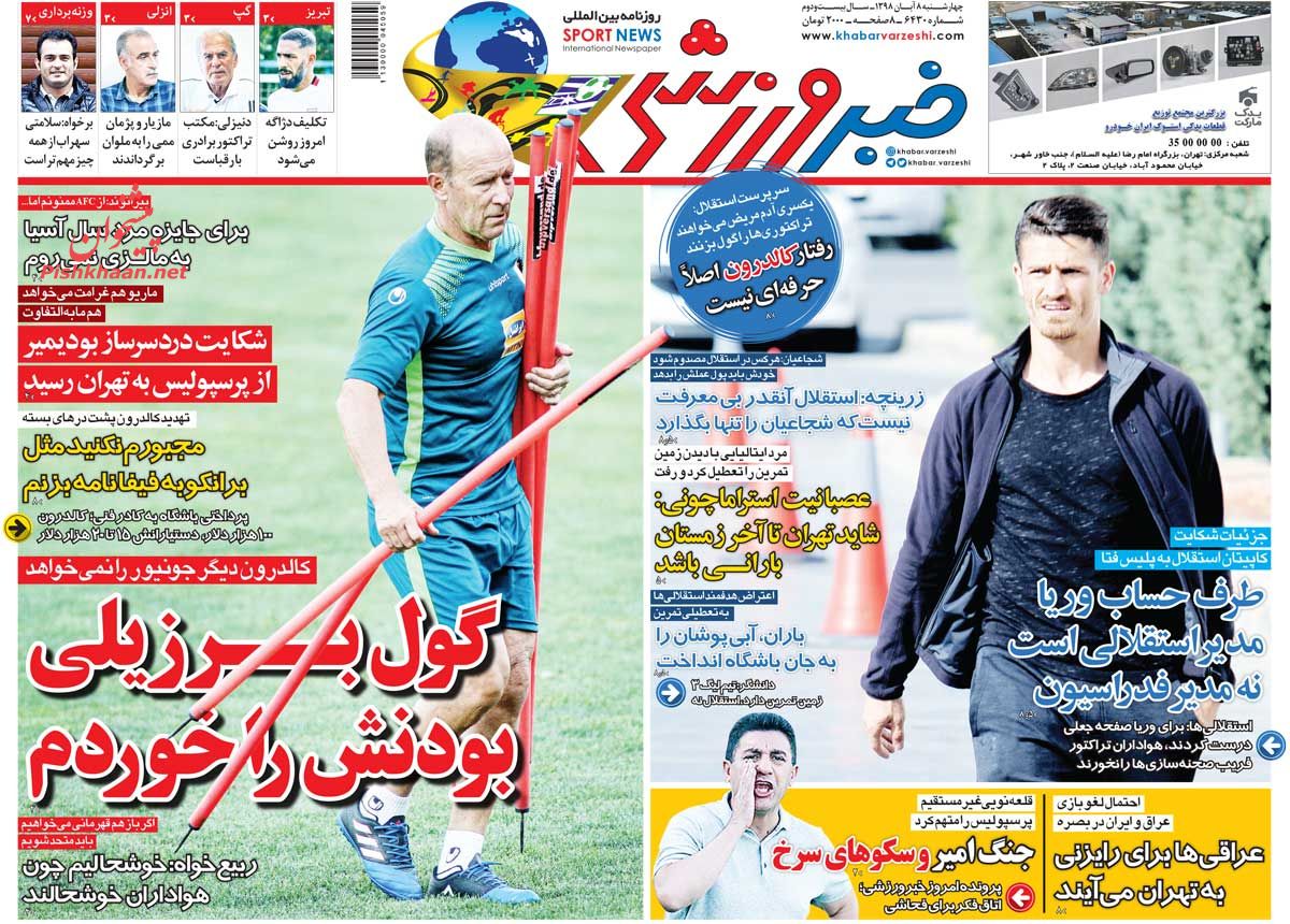 ایران ورزشی ، چهارشنبه ۸ آبان